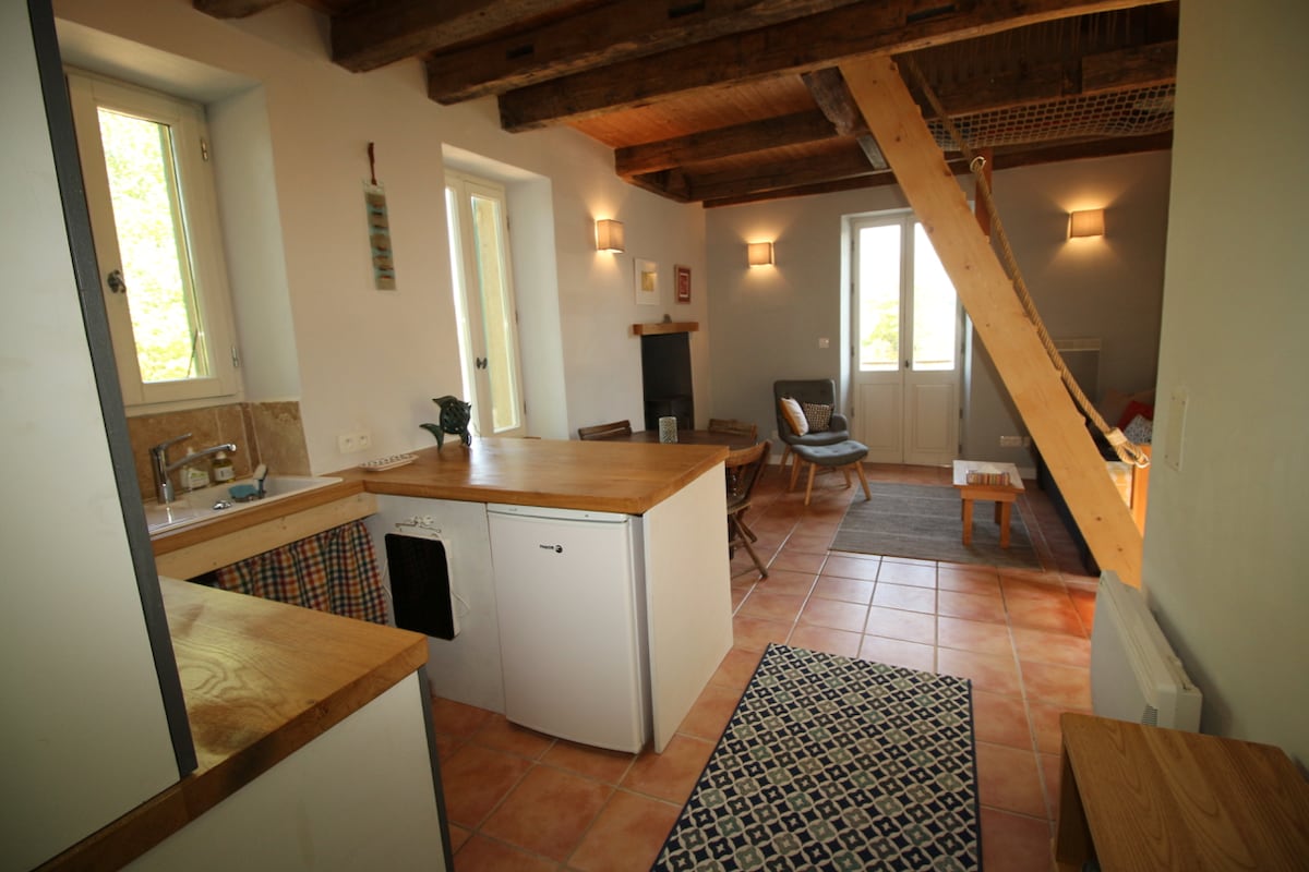 Nydelig gîte med én seng, privat terrasse og basseng