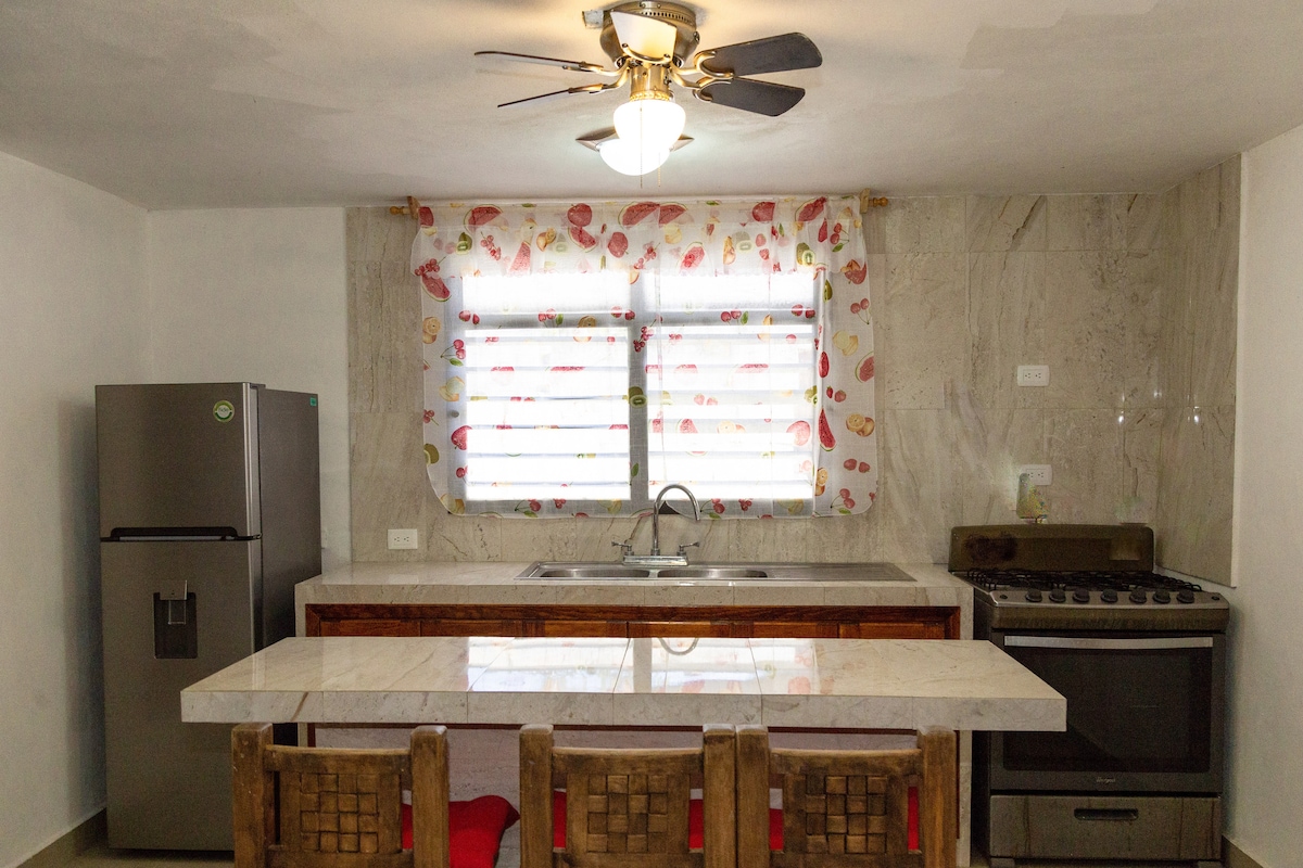 Hyggelig bakhus med to soverom, ett bad, kjøkken og en romslig uteplass. Fullt møblert og utstyrt med aircondition i hvert soverom, komfyr, mikrobølgeovn, kabel-TV med Netflix og varmt vann. Ligger i sentrum av Cozumel, bare tre kvartaler fra fergepieren. Nyt raskt fiberoptisk trådløst nettverk, perfekt hvis du trenger å jobbe i løpet av ferien. Dette bakhuset har en egen inngang. Du har også tilgang til et forfriskende basseng, perfekt for å slappe av etter en dag på øya.