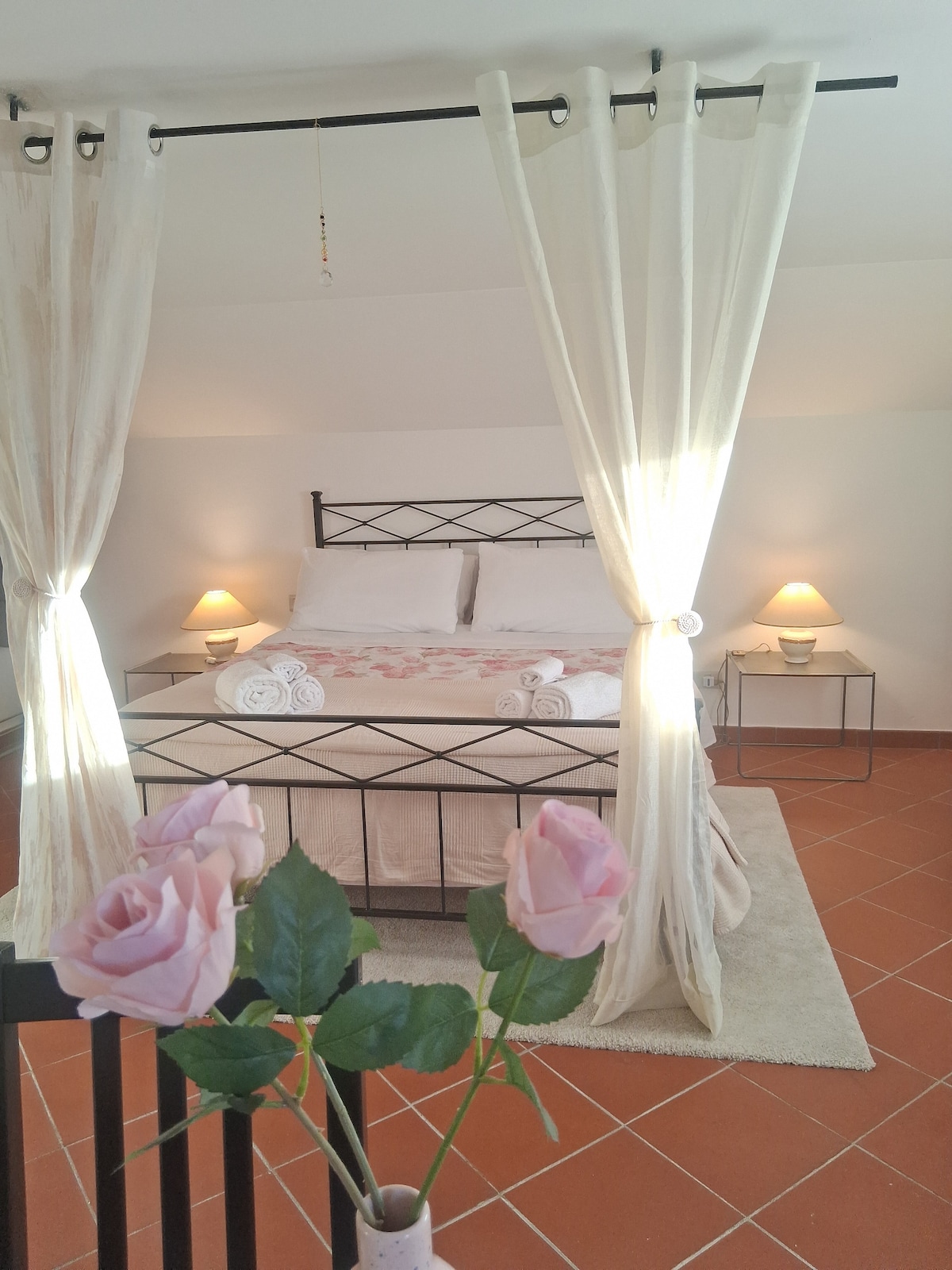 Tenk deg å våkne opp til åser med landsbyer og klokketårn så langt øye kan se fra soveromsvinduet: en alkove med skrånende tak, bjelker og små bjelker og et tregulv, plassert øverst i en gammel gårdsbygning. Forestill deg solen som skinner på vingårdene fra hver utsikt over huset, eller forestill deg det grønne på olivenlundene etter vårregnet forbi den store terrassen ved siden av kjøkkenet.