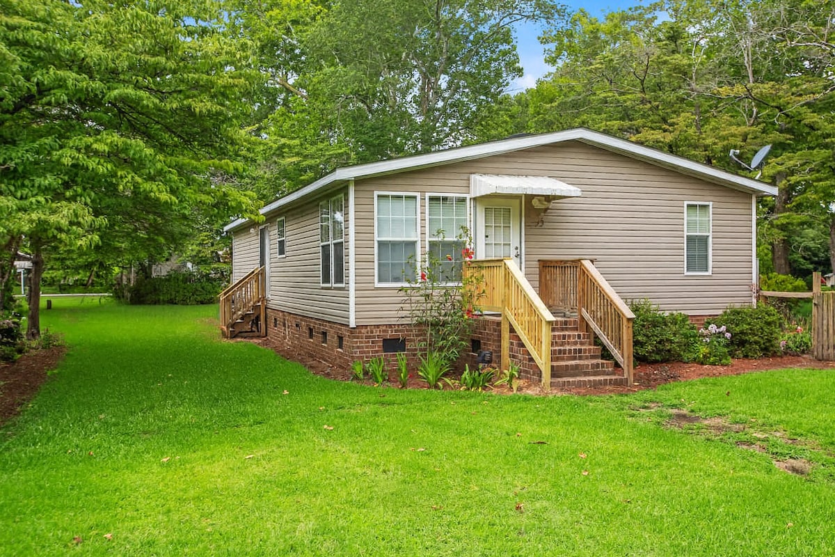 Trenger du et fredelig tilfluktssted i det østlige North Carolina? Dette sjarmerende Belhaven-låven med ett bad tilbyr den perfekte blandingen av ro på landet og eventyr ved kysten. Ligger på en fredelig eiendom med kyllinger og ender. Start morgenen med gode, gårdsferske egg, og dra deretter ut for å glede deg over alt området har å by på – fra båtturer på Pungo Creek til en minneverdig tur med Swan Quarter-fergen til Ocracoke Island.