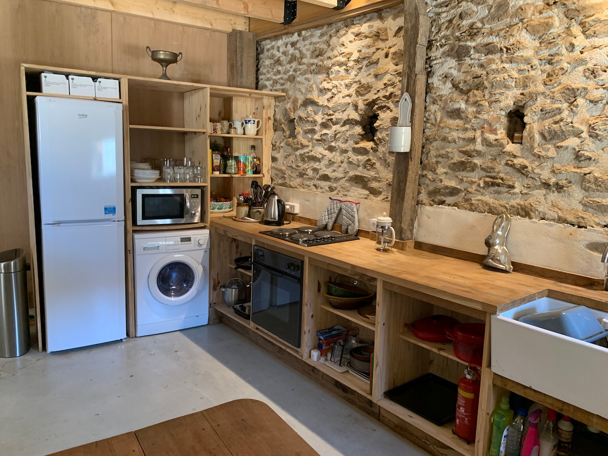 Ved siden av gården vår ligger den lille gîte på en blindvei. Den gamle låven ble forvandlet av oss til et selvstendig studio med alle fasiliteter (inkludert solcellepaneler) for en bekymringsløs ferie; åpen plass med kjøkken, sitteområde, queen size-seng og bad. Foran gîte er det den overbygde private terrassen med gjerde, slik at hunder trygt kan frigjøres. I et separat stykke hage er det svømmebassenget, som gjestene våre kan bruke. Passer for 2 personer. Kjæledyr er velkomne.