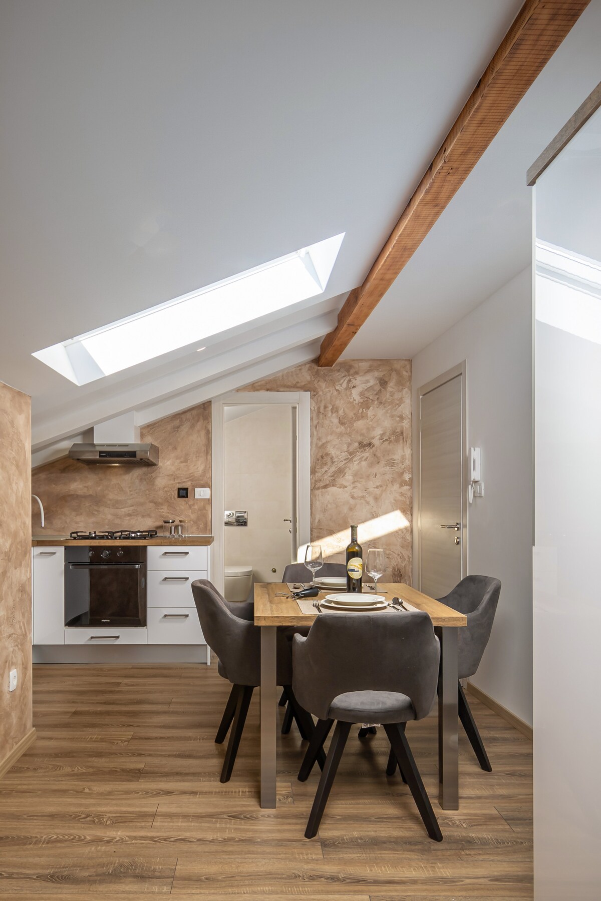 Loft med to soverom og takterrasse i Opatija, noen skritt fra Slatina Beach og ikoniske LungoMare. Dette nyrenoverte tilfluktsstedet blander minimalistisk design med luksus, og tilbyr to romslige soverom (alle med eget bad, queensize-senger og skap), et elegant, moderne kjøkken, en åpen stue og en fantastisk takterrasse. Perfekt for avslapning og utforsking!