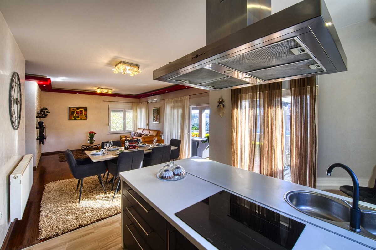 Hei, jeg heter Lucija. Jeg jobber som sykepleier og bor sammen med mannen min og to barn i en villa, og jeg er klar til å gi deg den beste hjelpen. Den nye villaen vår på kysten med fem private leiligheter har alt: boblebad, oppvarmet basseng (vannet er 25–30 grader), 150 meter strand, utekjøkken med grillplass, avslapningsområde med solsenger, parasoller og huske, fem minutter til butikk og restaurant, 15 minutter til flyplassen, 20 minutter til sentrum. Du trenger ikke bil! Sea-leiligheten er for fire personer: luftig og komfortabel, helt nye møbler, trygg parkering, trådløst nettverk.