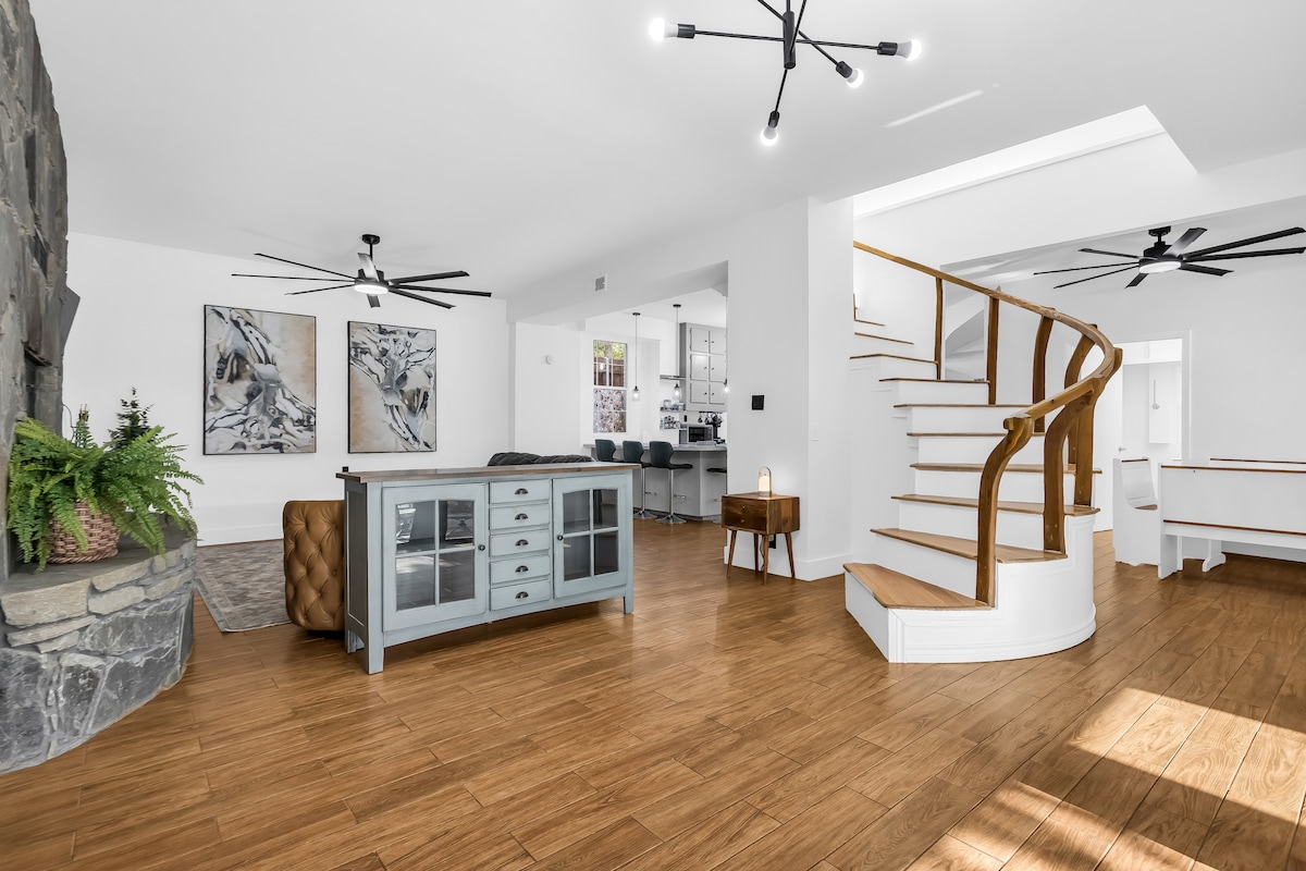 Håndverkerhjem som oser av karakter og gjennomtenkte detaljer, som ligger bare åtte minutters gange fra Denton Square. «The Fallon House: Craftsman» er hovedhuset på eiendommen, med «The Fallon House: Cottage» som ligger rett bak (tilgjengelig for å bestille separat), noe som gjør dette til det perfekte stedet for både små og store grupper! En koselig peis, et rolig sekundært soverom, regndusj og et frodig hovedsoverom gir gjestene en luksuriøs ferie – for en helg eller en stund.