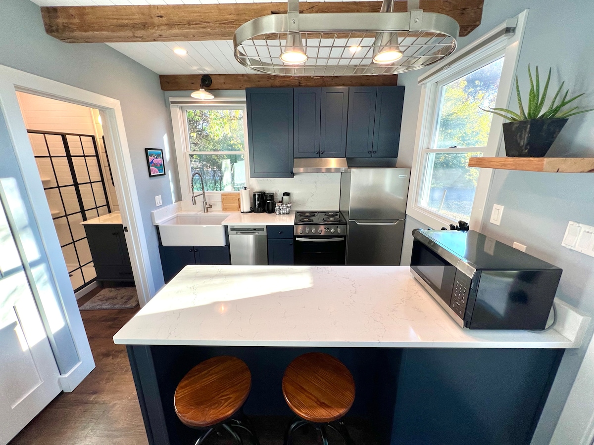 Velkommen til dette stilige og komfortable 1BR, 1,5BA hjemmet i Swarthmore! Dette nylig ombygde gjestehuset ligger bare noen kvartaler fra College, The Ville og togstasjonen. Det har plass til to og blander sjarm med moderne stil. Det var en gang en sykkelbutikk, og nå har den en åpen planløsning med synlige bjelker, fullt kjøkken, to TV-er, vaskemaskin/tørketrommel, privat inngang og parkering og klimaanlegg/varme med takvifter. Perfekt for korte eller lange opphold på en førsteklasses beliggenhet. Nyt hele huset for deg selv! Røyking, fester og kjæledyr er ikke tillatt.