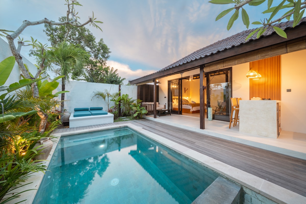 Reis til Alas Villa, en privat villa med tre soverom designet for familier og små grupper som ønsker plass, privatliv og komfort borte fra folkemengden. Villaen er omgitt av en fredelig atmosfære og har et privat svømmebasseng, romslige oppholdssteder og velutstyrte soverom – perfekt for avslappende dager og kvalitetstid sammen. Hvert soverom har aircondition og er gjennomtenkt designet for å sikre et avslappende opphold, mens den åpne stuen og spisestuen gjør at alle kan samles komfortabelt.
