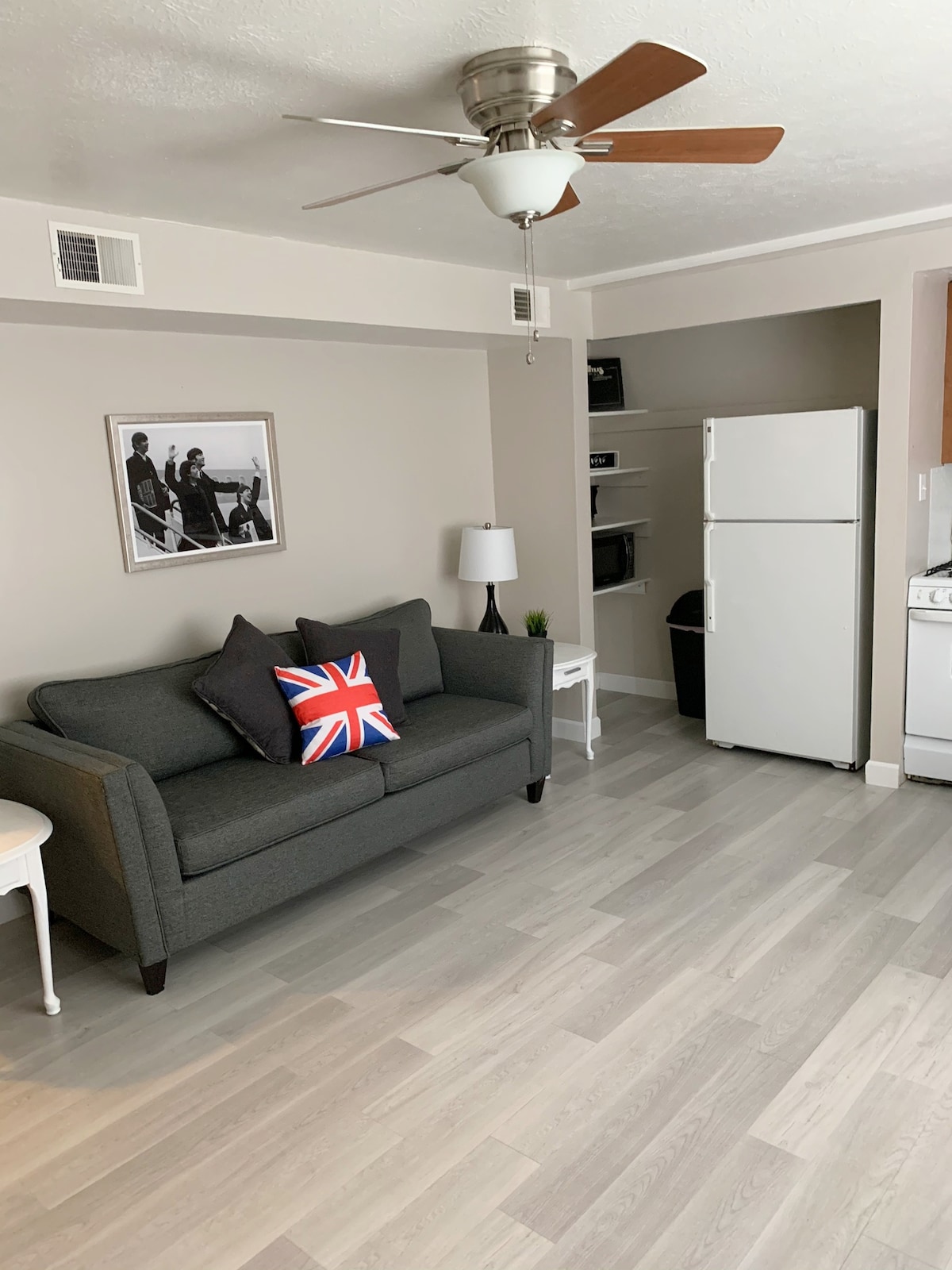 Du vil føle at du er borte fra alt i denne Beatles Executive Apartment. Oppdatert, moderne og fullt møblert leilighet med ett soverom har alt du trenger for et komfortabelt opphold. Stuen er åpen for kjøkkenet og har kjøkkenbord, sofa og RoKu-TV. Soverommet har en ny queen-madrass, bord for arbeid eller organisering av eiendeler, stol og kommode. Det er en madrass i to størrelser i skapet for ekstra gjester. Mindre enn 1,5 km fra Towpath Trail og sentrum av Massillon.