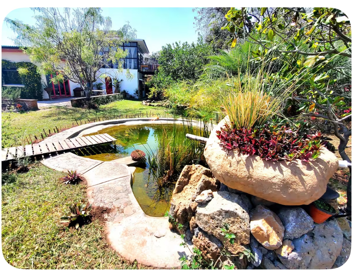 Live an amazing experience in this 100% eco bungalow just 15 minutes from downtown Tepoztlán. Have breakfast next to a waterfall pond and relax with the sound of the water. Rest comfortably in a beautiful room full equipped, extremely comfortable, private and clean. Swim in a natural chlorine-free bio pool and build a bonfire at night. The garden is shared only with the main house. It is located in a very safe area and within the forest where you will have direct contact with nature.