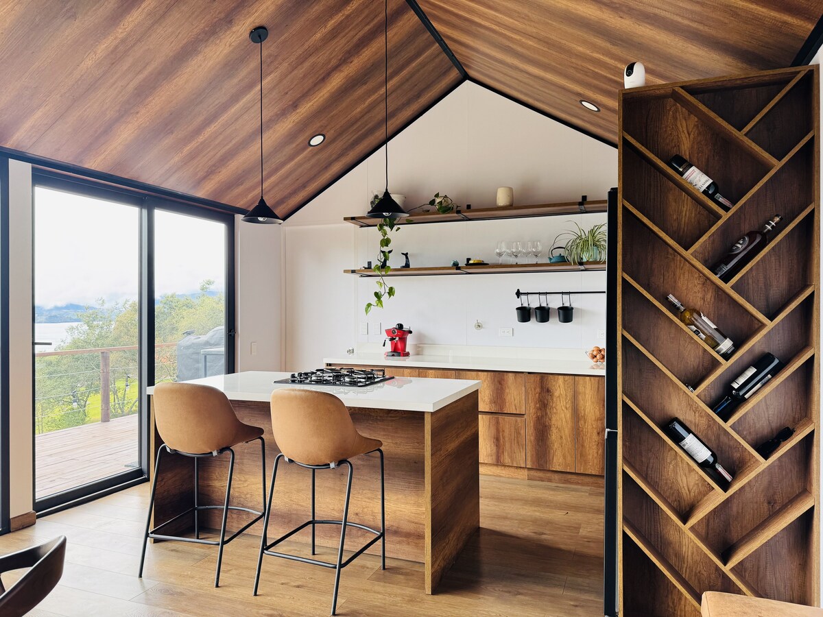 Oppdag ditt ideelle tilfluktssted i vår hytte i skandinavisk stil, laget helt av varm kanadisk furu og plassert høyt på fjellet med privilegert panoramautsikt over Sochagota-sjøen. Bare noen minutter fra hotelldistriktet kan du nyte roen i skogen uten å ofre bekvemmeligheten til nærliggende restauranter, kafeer og utendørsaktiviteter. Perfekt for par eller familier som ønsker å koble fra, få kontakt med naturen igjen og oppleve autentiske Paipa.