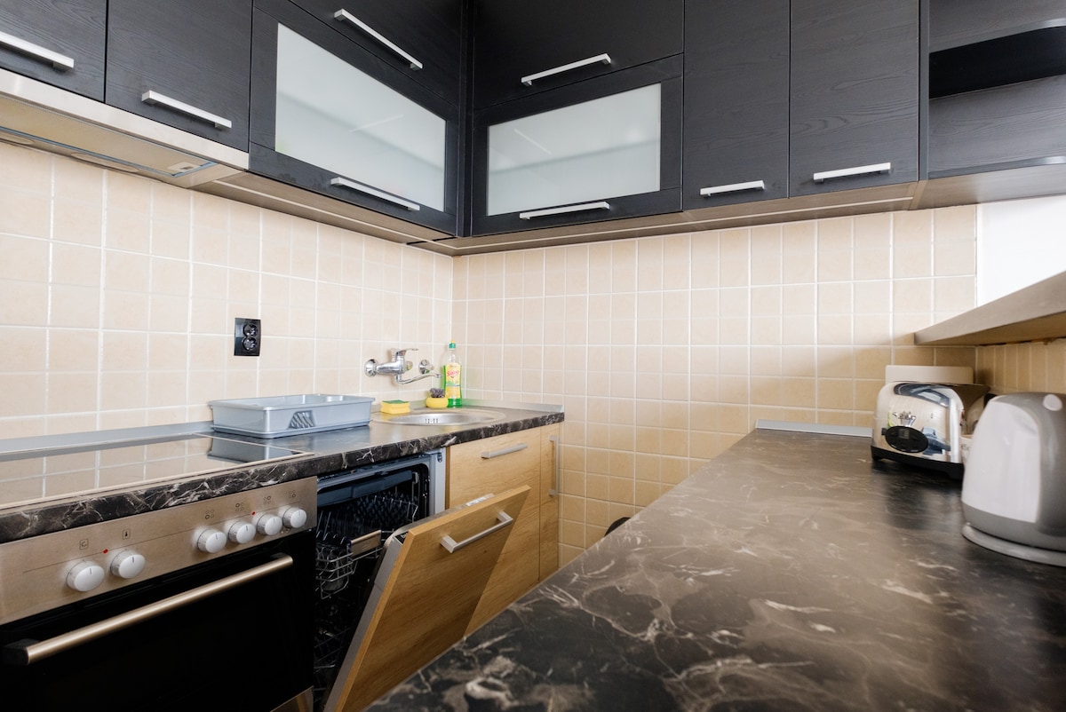 romslig, komfortabel og moderne utstyrt. inneholder en stor stue med kjøkken, tre soverom, to bad (et bad med badekar, vaskemaskin osv. samt et separat toalett), et spiskammer og to balkonger. Leiligheten har sentralvarme. LED-lys, kabel-TV, trådløst internett i alle rom, håndklær, sengetøy, alle nødvendigheter. Leiligheten er sikret med en sikkerhetsinngangsdør, og selve bygningen har et kodelåssystem, overvåkningskameraer og fysisk sikkerhet.