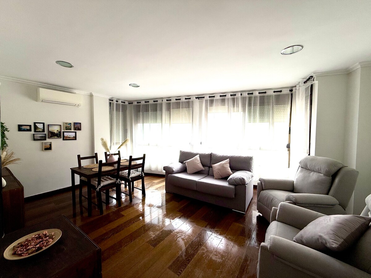 ✅ A solo 400 metros de la playa (5 o 10 minutos andando) Apartamento recién reformado en pleno centro, ideal para moverse a pie. Playa a 200 m, zona comercial y ocio a 5 min y supermercado junto al edificio. Entrada autónoma. Barrio tranquilo y muy seguro. Parking público vigilado cercano (de pago en verano).