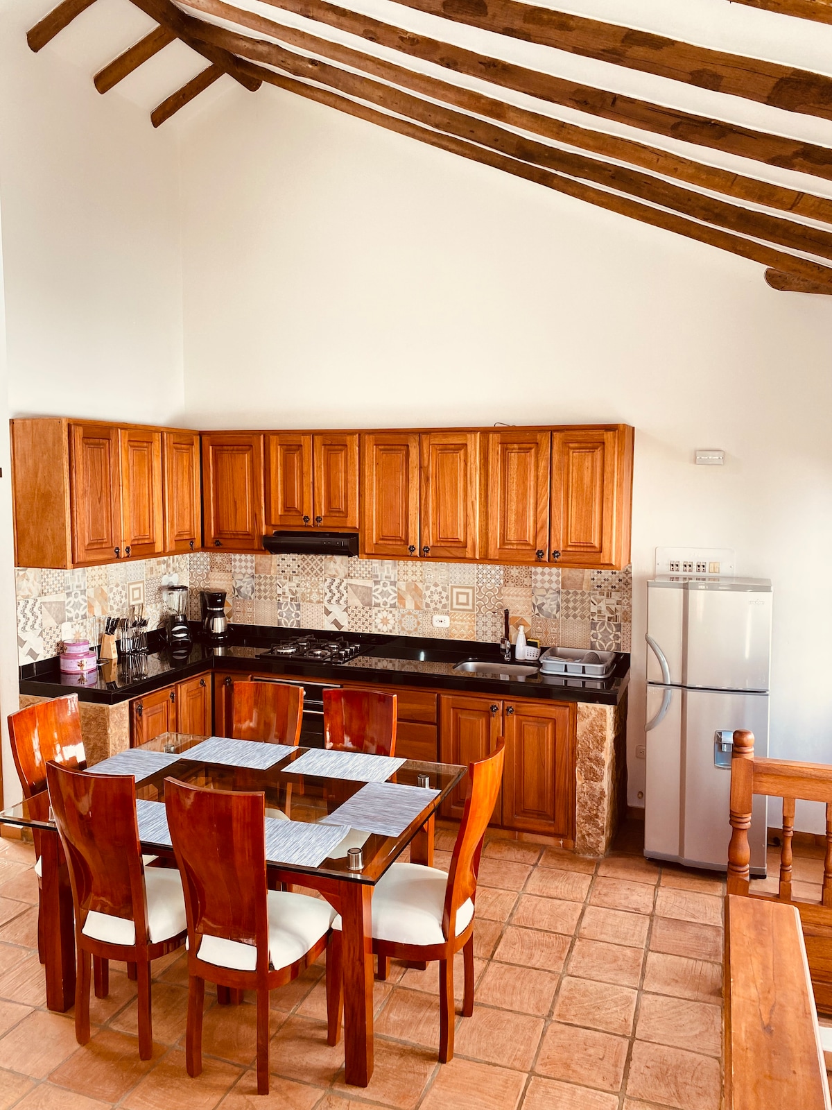 Balcón de Chie er en koselig familiehytte med to soverom, to bad, en lys stue og et fullt utstyrt kjøkken. De to private balkongene har inspirerende utsikt over Villa de Leyva og fjellet. I andre etasje, med mulighet for parkering og en moderne kolonistil, er det perfekt for å slappe av og nyte. Det er også bare fire kvartaler fra torget, ideelt for å utforske med familien. Leiligheten har: Trådløst nettverk med 80 Mbit/s Kjøkkenutstyr Baderomsfasiliteter Smart-TV