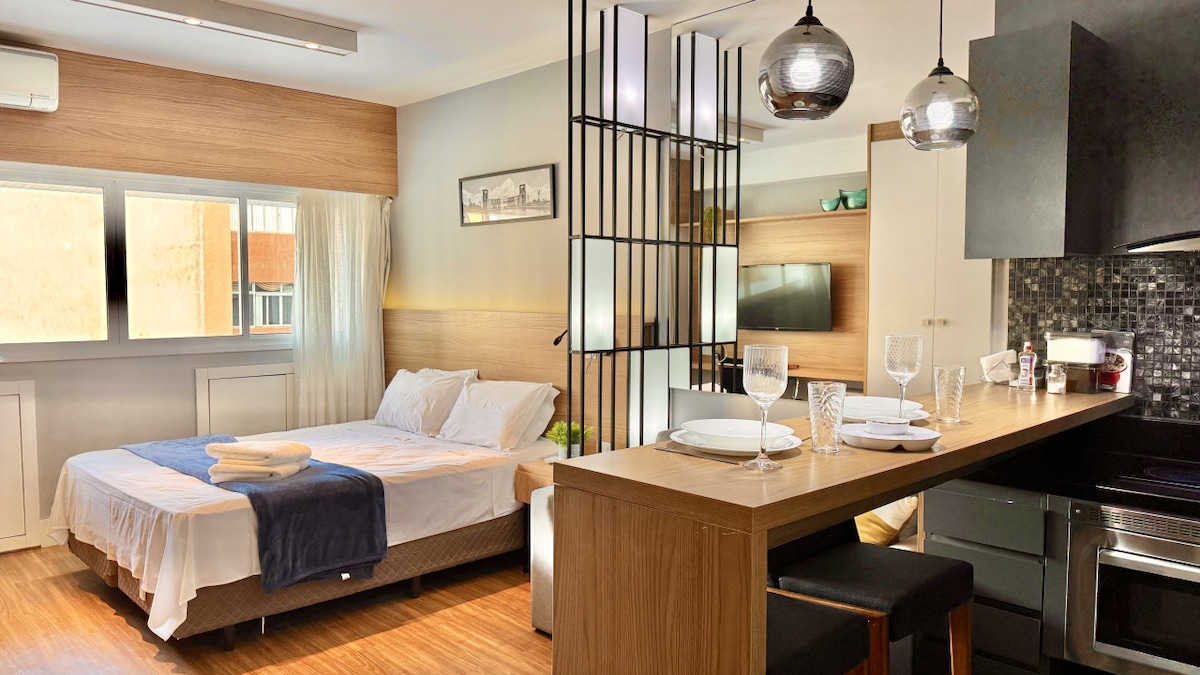 Oppdag 903 LogCentro, en elegant leilighet i hjertet av Curitiba. Nyt panoramautsikt, moderne design og en førsteklasses beliggenhet i nærheten av de beste attraksjonene. Inne er det et komplett kjøkken, raskt trådløst nettverk, smart-TV, luksuriøst sengetøy og et plettfritt, nøye forberedt sted. Ideell for fritid eller forretninger. Gjestene mottar en digital guide med innsidetips, lokale anbefalinger og eksklusive videoer og bilder av leiligheten.