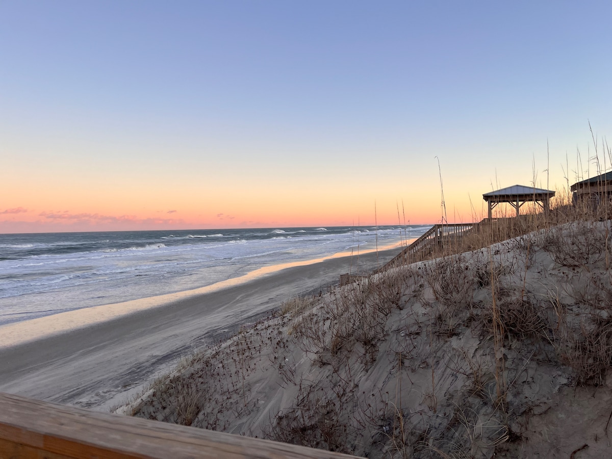 Reis til dette kystreservatet i Kitty Hawk Reserve – en perfekt blanding av fredelig natur, koselig komfort og rask tilgang til OBXs beste steder. Sov godt med en queensize-seng og to ekstra store enkeltsenger og en sovesofa. Minutter til strand, fjord, butikker og under en mil til broen. Godt utstyrt, plettfritt og perfekt for en liten familie/gruppe. Slapp av i saltvannsbassenget og grotten i bakgården (oppvarmet alternativ) og bassenghuset. Privat terrasse og inngang. Åpent mai–1. oktober. Ligger i andre etasje, ikke egnet for små barn.
