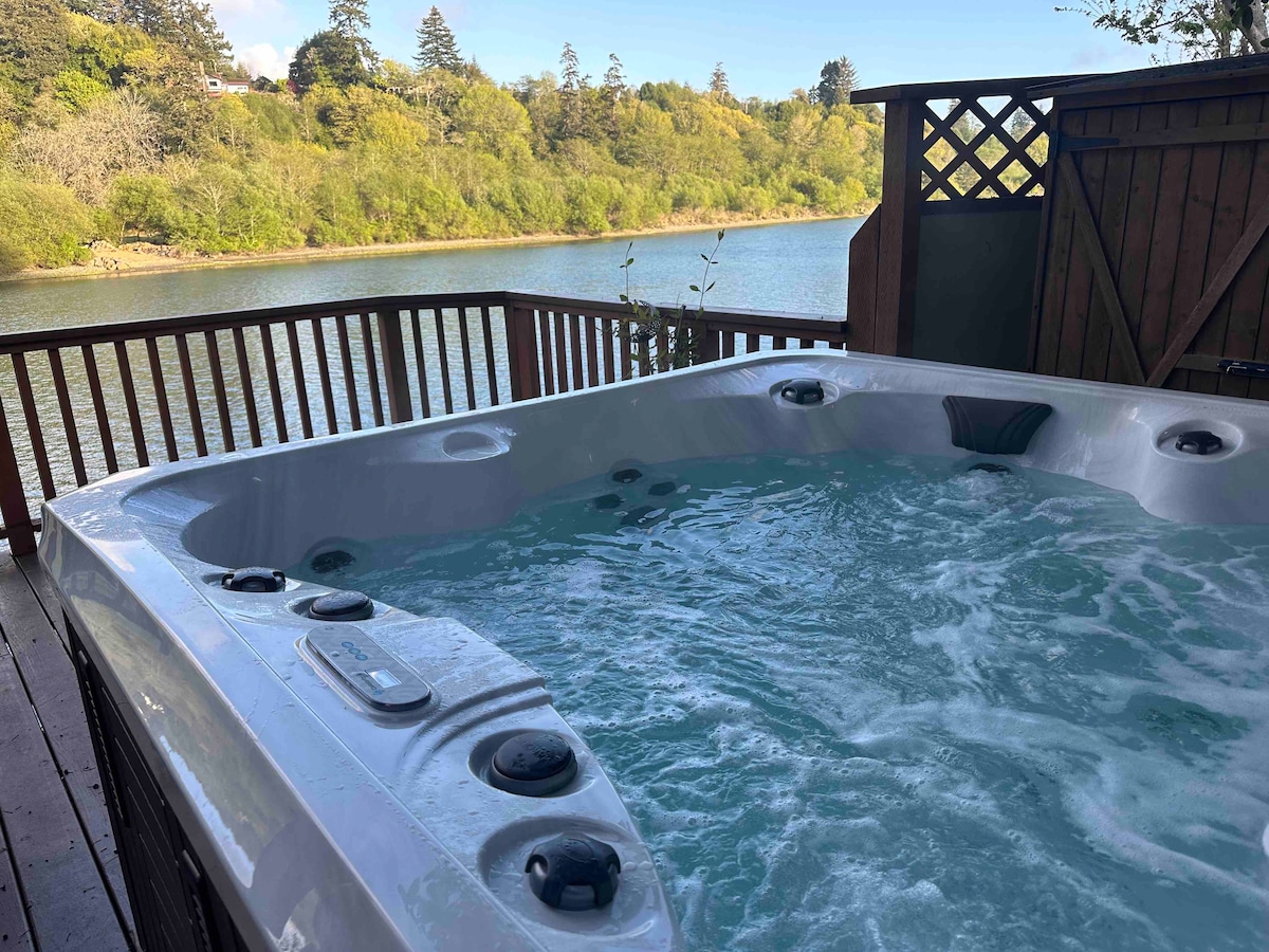 På vei til stranden for en familieferie? Nyt utsikten over Winchuck-elven om dagen, eller terrassebelysningen eller stjernene om natten fra boblebadet på øverste dekk i denne avsidesliggende hytta. Bare 1/4 mile fra Crissey Field State Park strandtilgang og minutter til butikker og restauranter. Familievennlig, nyoppusset hjem med komfortabel plass til åtte personer. Stort kjøkken med alt du trenger. Hvis vann og hvile er det du søker, kan du nyte elven, boblebadet og stranden på denne rolige beliggenheten.