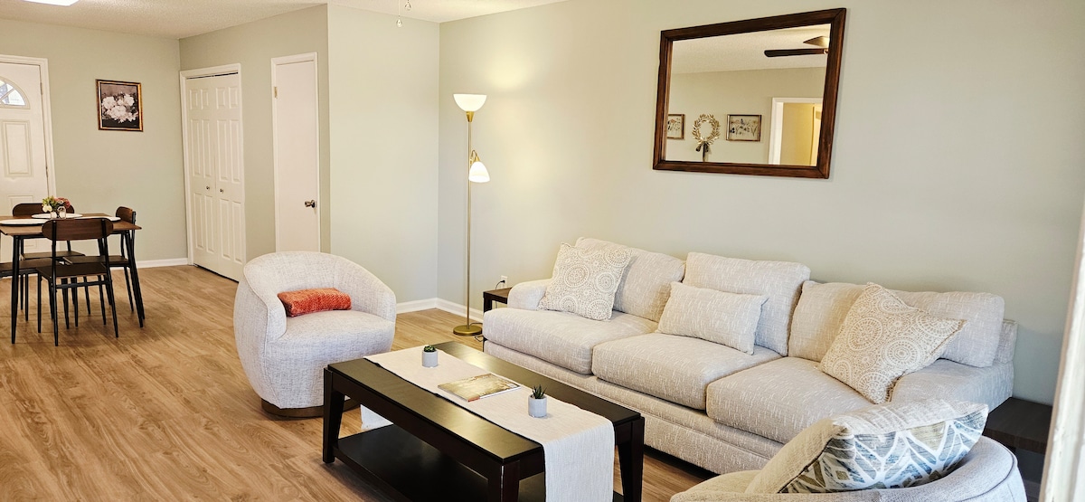 Oppdag dette NYRENOVERTE luksuriøse og komfortable tilfluktsstedet med bare en kort kjøretur på tre minutter til Uptown Columbus, fem minutter til Piedmont Hospitals og 15 minutter til Fort Benning. Det er sentralt plassert mellom Riverwalk, Bibb Mill og City Mills arrangementsentre. Perfekt for jobbreisende, militær eksamen, bryllupsdeltakere, helgetur, Clingstones baseball, pickleball og rafting-turer. Bestill nå for å nyte det koselige oppholdet ditt med karakter og sjarm.