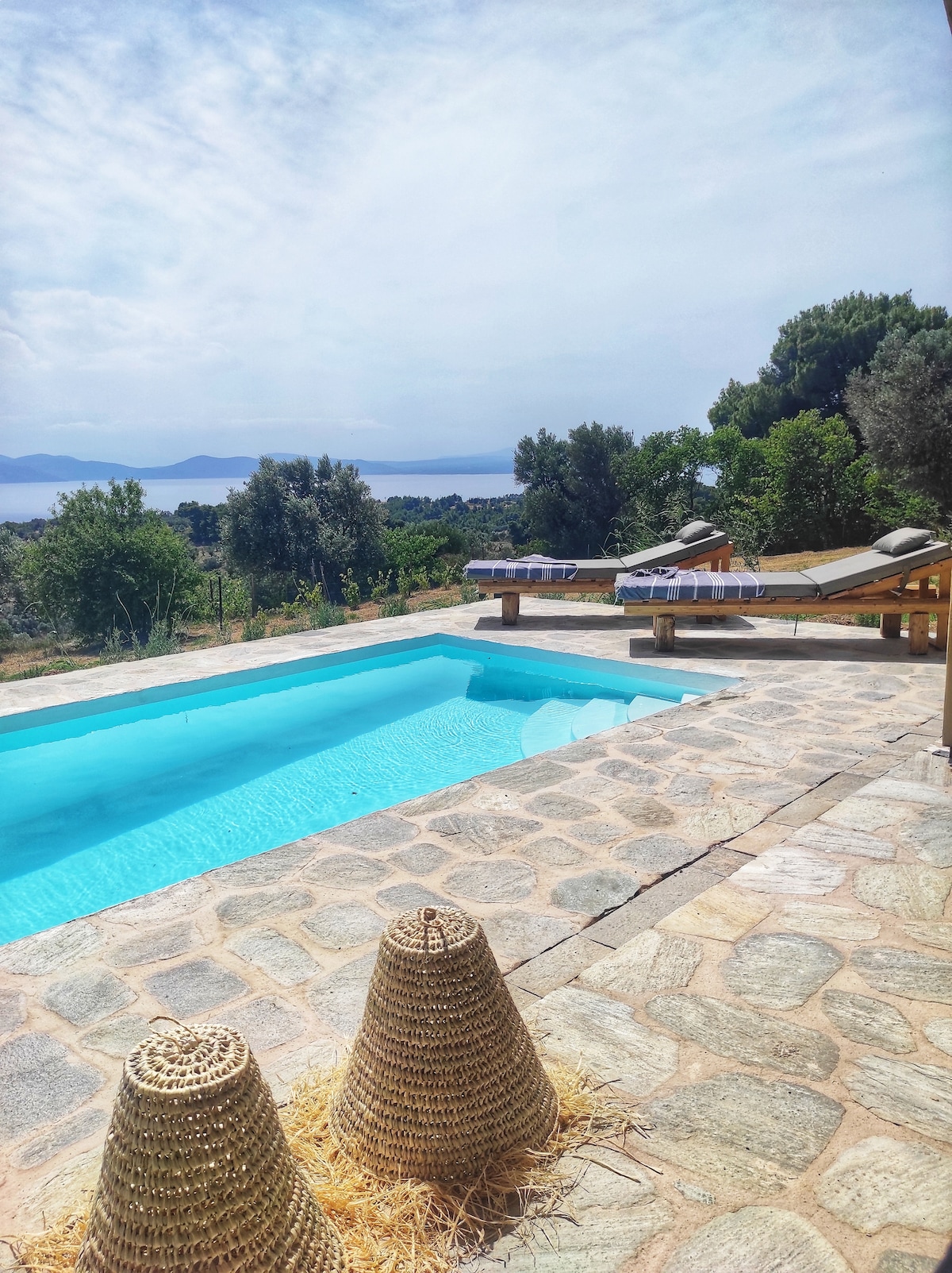 Et vakkert og spesielt steinhus bygget med kjærlighet helt fra fundamentet med naturlige materialer som stein og tre. Det ligger i et grønt område utenfor landsbyen Nerotrivia med ubegrenset og uhindret utsikt over Euboean Bay og Mount Kantilio, ideelt for øyeblikk av avslapning og ro. På samme eiendom har vi også laget et annet hus med svømmebasseng og ubegrenset utsikt over havet, med samme filosofi, som er adskilt med en steinmur for å sikre absolutt privatliv.