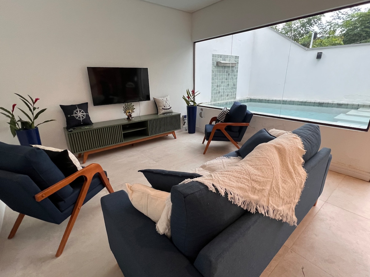 Hus i lukket boligområde i Barra do Sahy med 400 m2, 4 suiter, 1 toalett og kapasitet til å huse 8 personer komfortabelt. Huset er i god stand og er ekstremt sjarmerende, romslig og godt dekorert, med en fantastisk utsikt fra alle rom og soverom til stranden. Det er et godt ventilert og kjølig hus fordi det har høyt tak og store glassvinduer rundt hele miljøet. Terrasse med svømmebasseng, grill og utendørs bord. 24-timers sikkerhet. Høyhastighets fiberoptisk wifi.
