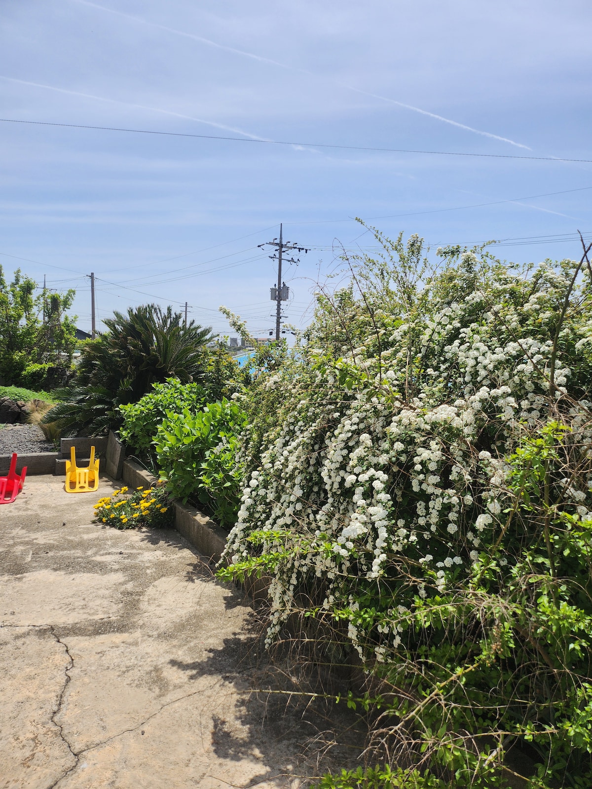 På et 130 pyeong stort område er det en grønn plen, en Jeju basalt dekke, og Jeju Aemmulda i rosa klær på tredekket. På den grønne plen er det en hengekøye hvor du kan slappe av i solen ved siden av et mandarinentre, og det er en bålpanne hvor du kan tilbringe tid med familie og kjæreste. På tredekket er det en grill og en huske, slik at du kan slappe av og nyte et måltid med familien. Hvis du lener deg tilbake i en hvilestol og ser på skyene og stjernene på nattehimmelen, som bare kan sees i Jeju, vil du føle deg helbredet. Siden det er en gullfugl og en mandarinlåker i nærheten, kan du tilbringe dagen med forskjellige lyder av fugler i alle årstider. Hvite vegger og interiør med massivt treverk som akasie og mulberry gjør rommet varmere og mer koselig. Det er mange vinduer inne i boligen, og stuen er høy, så det er behagelig, og det ryddige interiøret er tilstrekkelig til å bo i boligen hele dagen. Med underholdningsapparater og brettspill kan du ha en tilstrekkelig koselig tid selv når du blir inne på grunn av dårlig vær, og det er mer privat å bruke svømmebassenget og peisen alene.