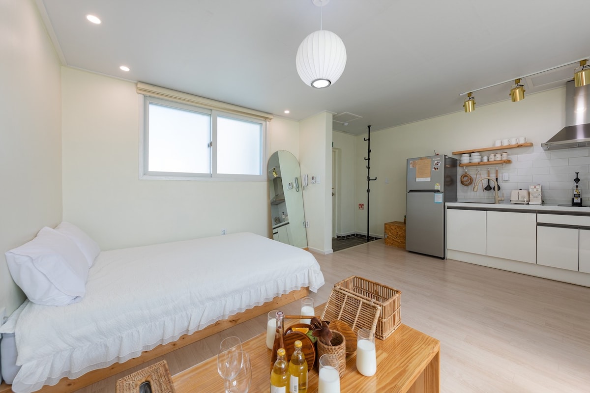 AC1204 er et lite pensjonat og restaurant som drives av et par. Jeg har blitt valgt som Airbnb Superhost de siste åtte årene med varm og gjennomtenkt omsorg. Jajakdo-stranden, en minuttspasertur fra eiendommen, er et rolig sted for familier og par å nyte havet året rundt. Stranden er ren, stille og grunn, noe som gjør den til det perfekte stedet å leke med barn. 📍Beliggenhet. 46 Haepharang-gil, foran Jajakdo-stranden 🏡 Romguide (totalt tre). Rom 104 foran den hvite sandstranden i første etasje. 1. etasje, Hae Pa Rang-gil, nr. 1004 Suite 1204 i andre etasje. 🍴 Frokost 09.00–11.00 Gratis for gjester i helger, høytider og høysesongen Meny: nybakt brød, sesongsalat, dagens suppe, drikkevarer Forhåndsbestilling for forberedelse av materiale 🍴 Restaurant 9.30–18.00 Stengt: tir, ons, tor (åpent i helger, på helligdager og i høysesongen) Brunsj: 20 000 KRW per person Meny: pizza, pasta, salat (Linas bordoperasjon) Guide for🌊 lavsesong Ukedager: Frokost tilbys ikke, innsjekking uten vert.