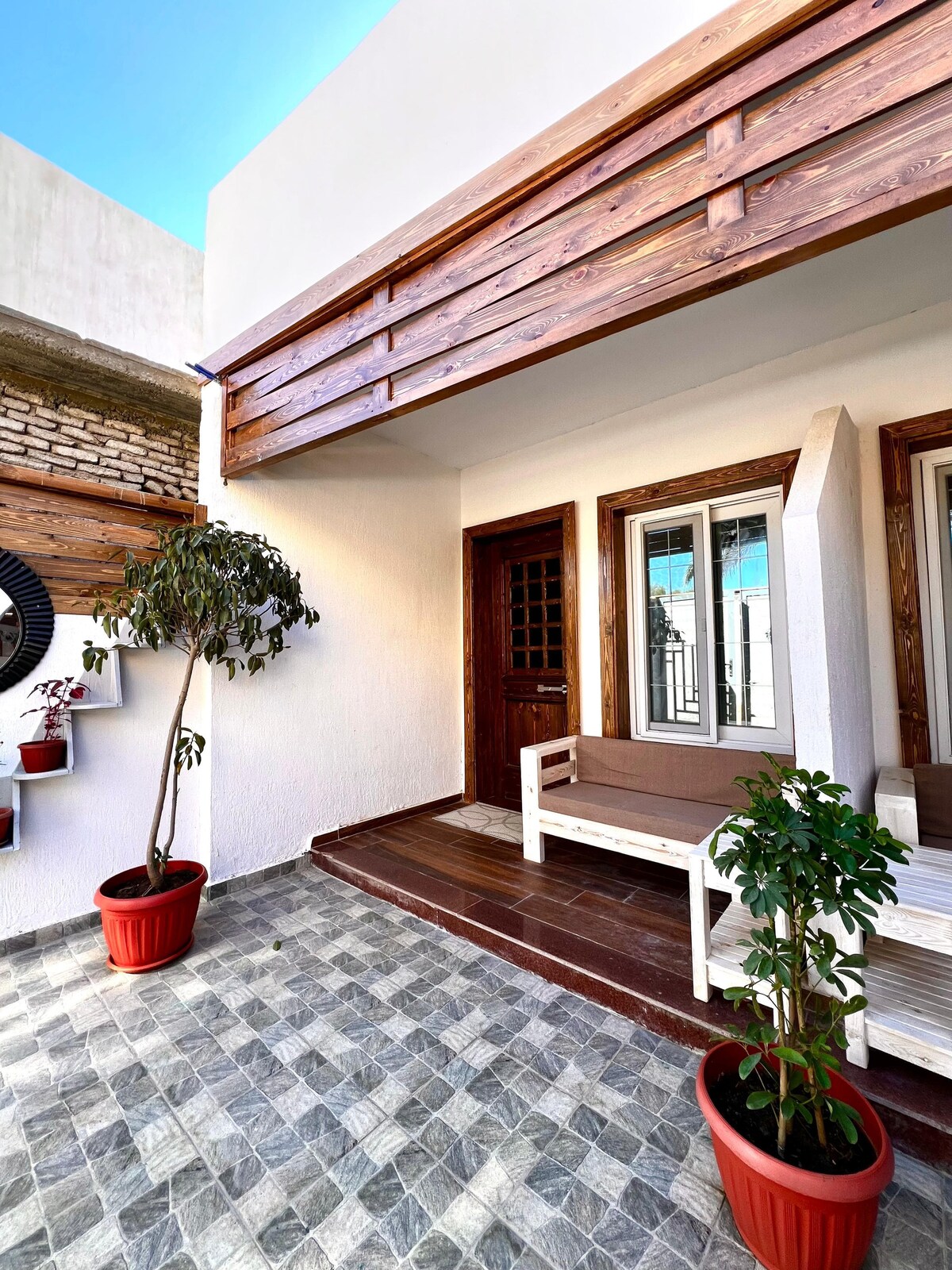 Rimelig, rent og sentralt opphold i Dahabs Assala-område. Bare ti minutters (750 m) gange til fyrtårnet og syv minutter (500 m) til stranden. To soverom (ett dobbeltrom og ett tomannsrom) med god plass til fire. Nyt et fullt utstyrt kjøkken med toppmoderne komfyr og stekeovn, TV, håndklær og et inngjerdet uteområde for sikker oppbevaring av sykler eller avslapning. Nær kaféer, dykking, snorkling, yoga, ørkensafari og den avslappede sjarmen i Dahab.