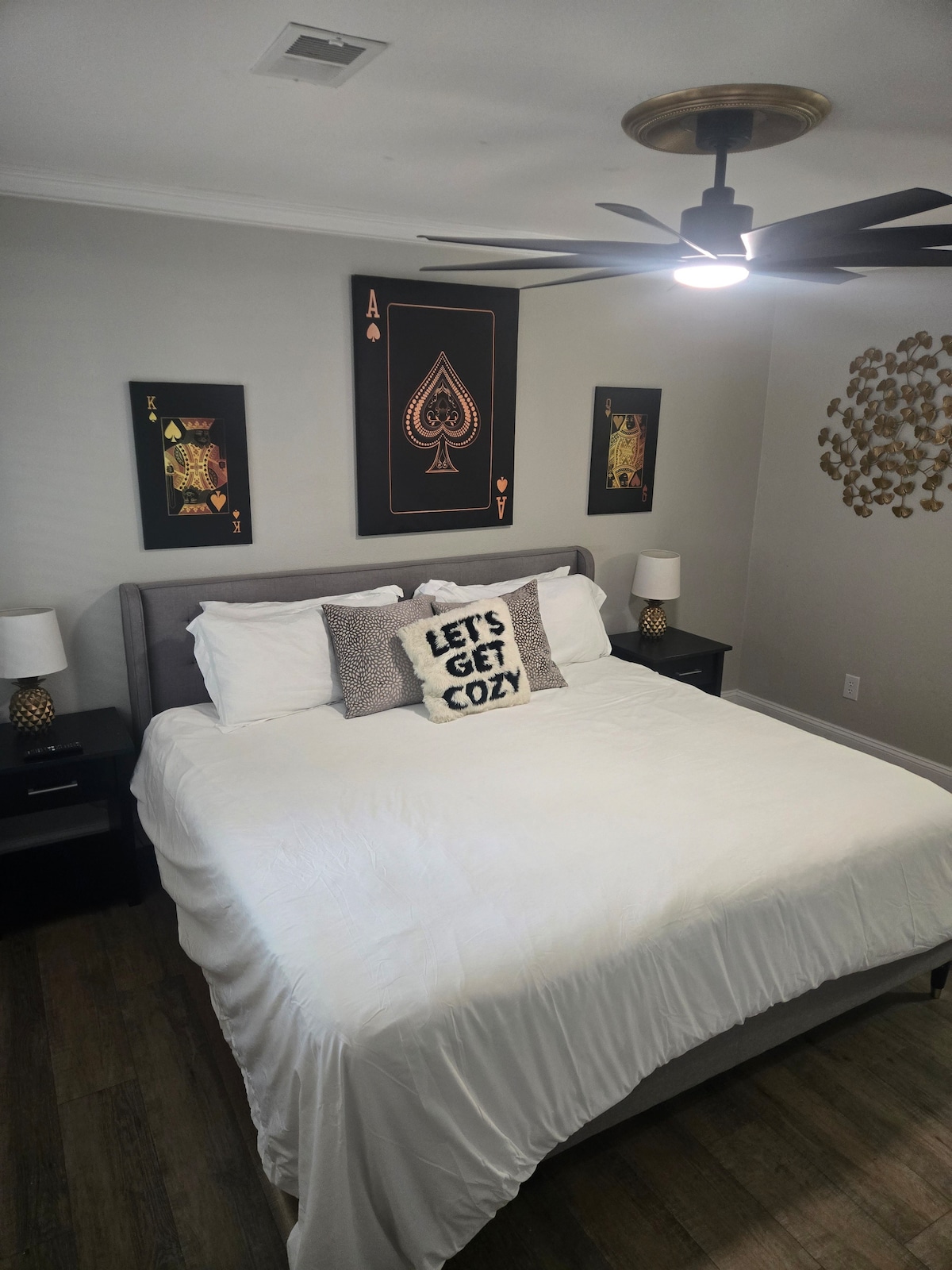 Hidden Cove ligger i et veldig rolig nabolag, bare fem minutter fra sentrum av Dahlonega. Kvartalene ligger i første etasje i et stort tømmerhus. Denne studioleiligheten, dvs. ett stort område, er delt inn i spesialdesignede rom. Den er nyoppusset. Det er én queensize-seng og én sovesofa med ett fullt bad. Når du nærmer deg leiligheten, passerer du gjennom den 10 x 20 fot store, overbygde terrassen, nyinnredet og klar til å nytes.