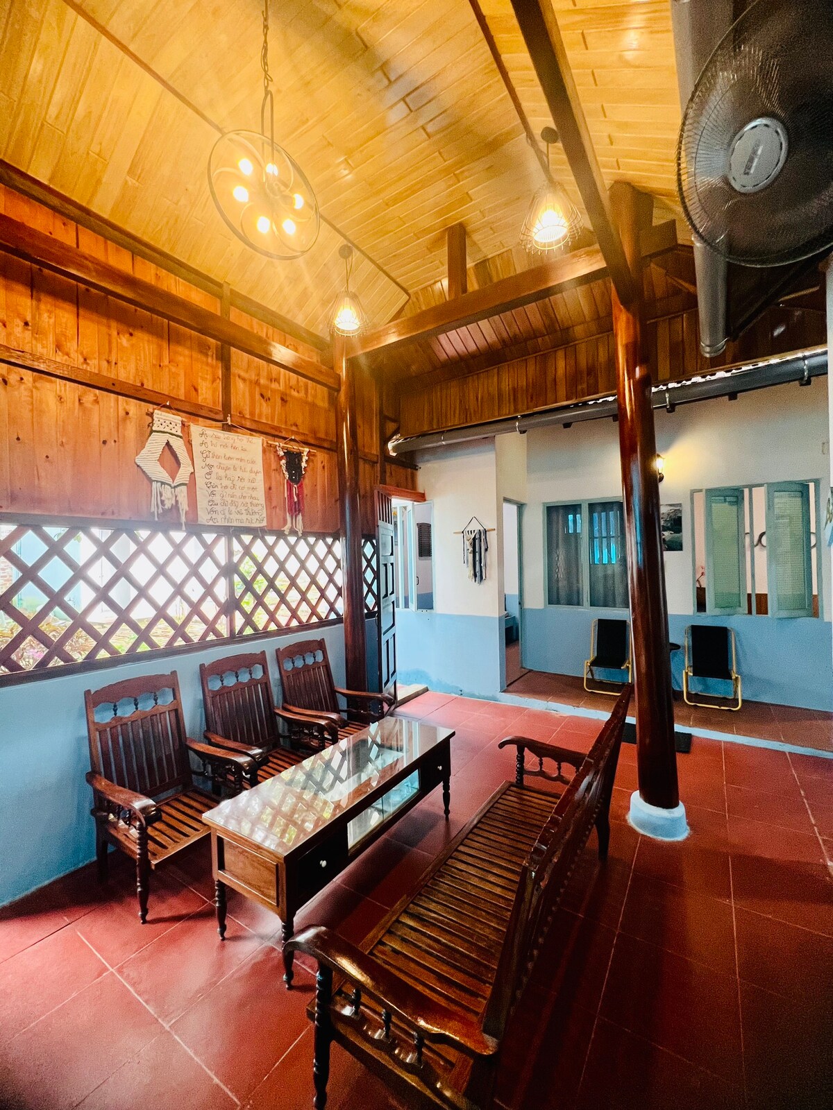 Nyt et privat, rolig sted med et romslig soverom med kingsize-seng, med din egen balkong med utsikt over den grønne hagen. Rommet er utformet for å være minimalistisk, men fullt utstyrt: – aircondition, sterkt trådløst nettverk - Rent, privat bad. - Omkledningsbord – stor glassdør som slipper inn naturlig lys ✔ Passer for par, folk som trenger et avslappende sted i nærheten av naturen, men som fortsatt er praktisk å flytte – bare unna sentrum. Kon Tum ligger fem minutter unna med bil. * Homestay ligger i Kon Tum by, ikke Mang Den. Kontroller beliggenheten før du bestiller