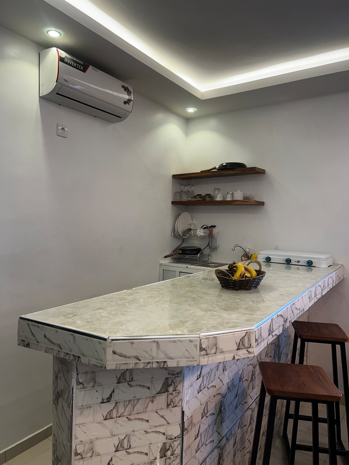 En ny luksusleilighet, fullt møblert og møblert, 120 m2, to soverom, to bad og besøkstoalett, stor stue, stort kjøkken, havutsikt over soverommene og stuen, stranden rett ved siden av, ambassadeområde, veldig rolig og fredelig, treningsstudio, dobbel parkeringsplass, sikker 24 timer i døgnet, flerbruksrom, stor takterrasse. strømforbruk på bekostning av kunden bortsett fra forhåndsbetalt pakke, trådløst nettverk tilgjengelig – fiber