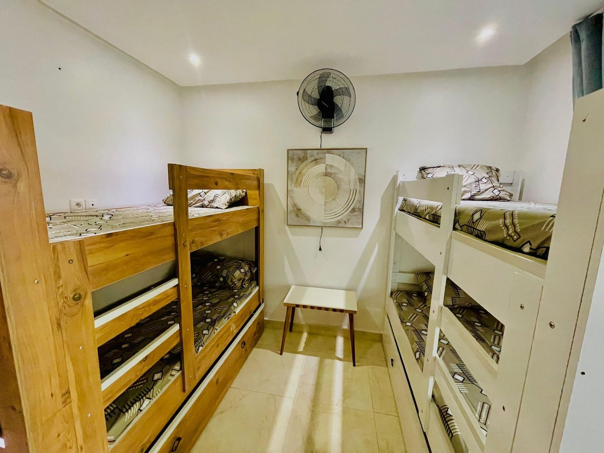 Moderne, komfortabel og svært funksjonell. Det ligger i utkanten av en nydelig liten strand, kalt den "tredje stranden" på øya. Ved siden av klippen med utsikt over den berømte høyre side av Ngor, er surfehuset den perfekte baseleiren for å nyte Dakar-bølgene. Almadies eller Le Virage ligger fem minutter unna med bil, Ouakam ligger ti minutter unna, og Ngor ligger... i enden av hagen! Mer spesifikt: Overnattingsstedet som tilbys er en hagegulv på 100 m2.