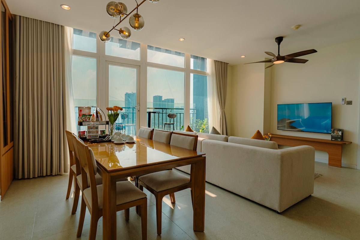 Opplev et opphold i hjertet av Saigon, hvor luksus, privatliv, komfort og bekvemmelighet møtes. Den romslige duplex-leiligheten vår har fantastisk utsikt over byen, et privat basseng på terrassen, tilgang til fasiliteter som et basseng på taket, treningsrom og badstue. Gjestene våre ligger ved siden av den japanske ambassaden, og har enkel tilgang til ikoniske landemerker. Ben Thanh-markedet - 8 minutters kjøring War Remnants Museum – 8 minutters gange. Notre Dame-katedralen - fem minutters kjøring Bestill for varige minner — se detaljer nedenfor