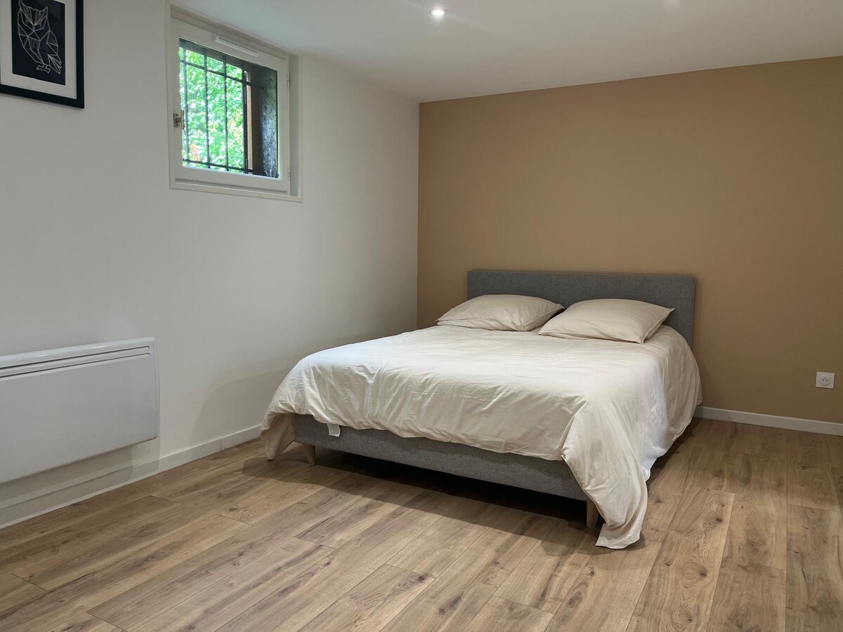 Hele leiligheten T2. Uavhengig overnatting i et 52 kvm hus for 2 til 4 personer. Beliggende i Francheville, som grenser til LYON 5. i et rolig miljø: – Syv minutter til sentrum med bil. – 20 minutter med buss/T-bane. – 5 min A7 Bestående av: – ett lukket soverom med seng på 160 x 200: sengetøy følger med - møblert kjøkken – Stor stue med rapidosofa 140 x 200 cm. -Bad med badekar: badehåndklær inkludert - flatskjerm-TV - wifi - parkering. - Ikke røyking - Ingen kjæledyrvennlig. - ingen fester