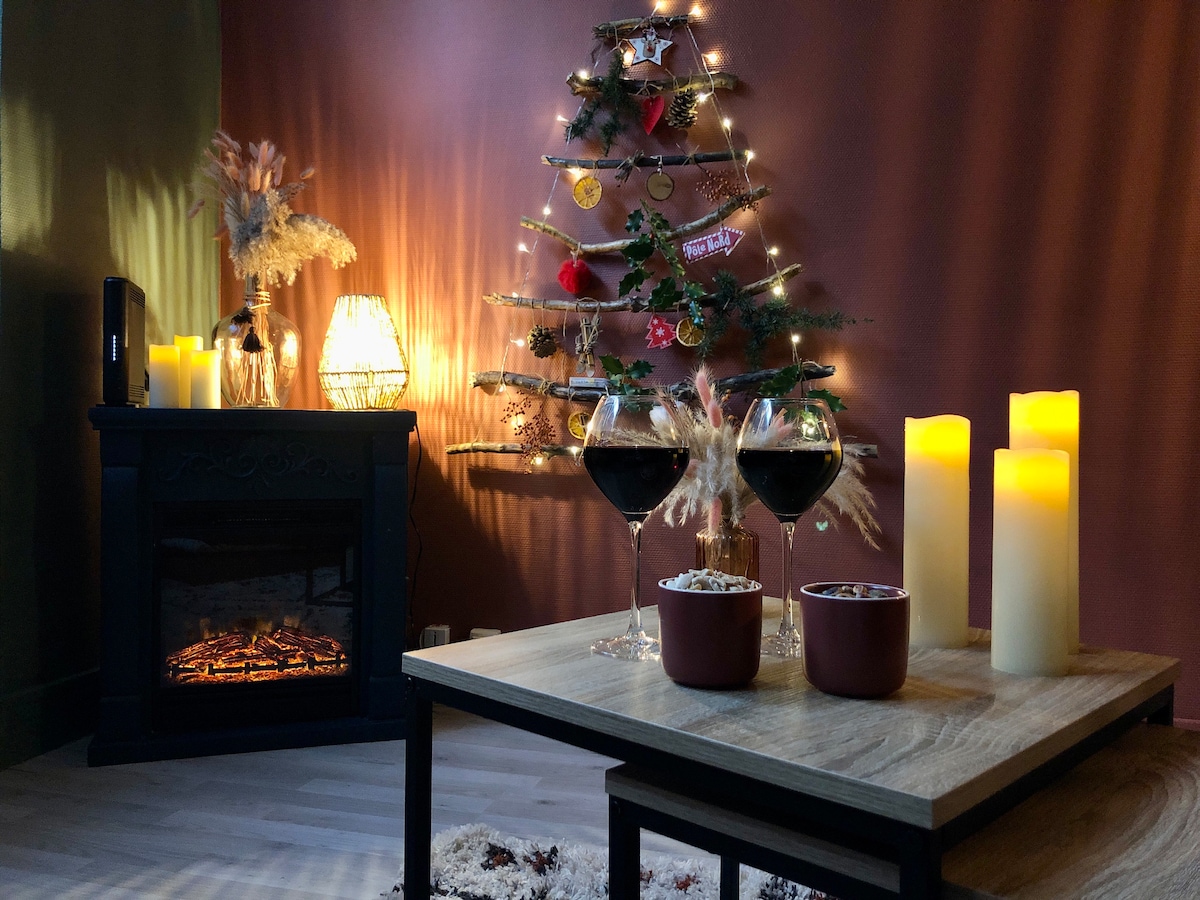Vår koselige og funksjonelle leilighet tilbyr alt du trenger for et komfortabelt opphold. Den ligger i Champagne au Mont d'Or, like utenfor Lyon, og gir enkel tilgang til sentrum via motorveiene eller kollektivtransport, som ligger 5 minutters gange unna. Dra nytte av privat parkering, selvbetjent innsjekking, fiber-Wi-Fi, tilgang til Netflix og et fullt utstyrt kjøkken. Separat soverom, sovesofa, moderne bad. Perfekt for et avslappende eller profesjonelt opphold.