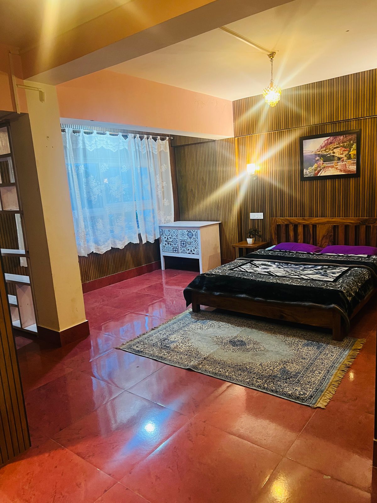Misty Morning Homestay er et romslig opphold på 1800 kvadratfot i hjertet av Darjeeling, som ligger rett ved siden av det ikoniske klokketårnet. Med enkel gangavstand til Chowrasta, Chowk Bazaar, Glenary's, Keventer's og Mahakal Temple, tilbyr det den perfekte blandingen av komfort og bekvemmelighet. Eiendommen har tre rom med kingsize-senger og tilstøtende bad, som kan bestilles individuelt eller som en hel leilighet, med flere inngangsmuligheter for gjestenes bekvemmelighet. Vi har tre rom oppført separat, sjekk dem ut.