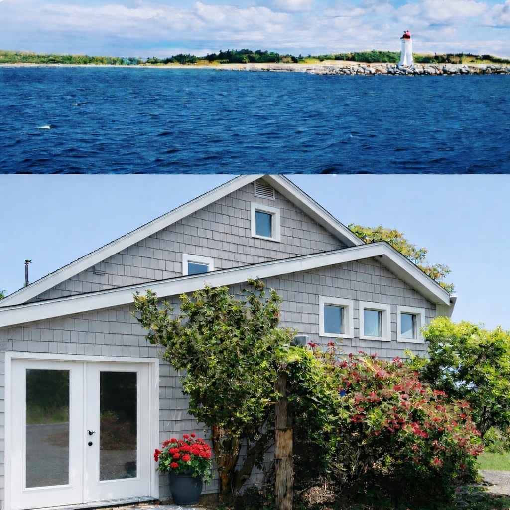 Denne fredelige og private eiendommen har en vakker havutsikt. Nyt å se cruiseskip, seilbåter og lasteskip komme inn i Halifax havn! Denne helt private enheten har to soverom med plass til familier på opptil fem personer. Beliggende 15 minutter fra Halifax sentrum. Nær sykehus, restauranter, natteliv, museer og shopping. Havkysten og mange stier ligger innenfor gangavstand. Beliggende ved siden av York Redoubt og veldig nær Herring Cove Provincial Park.