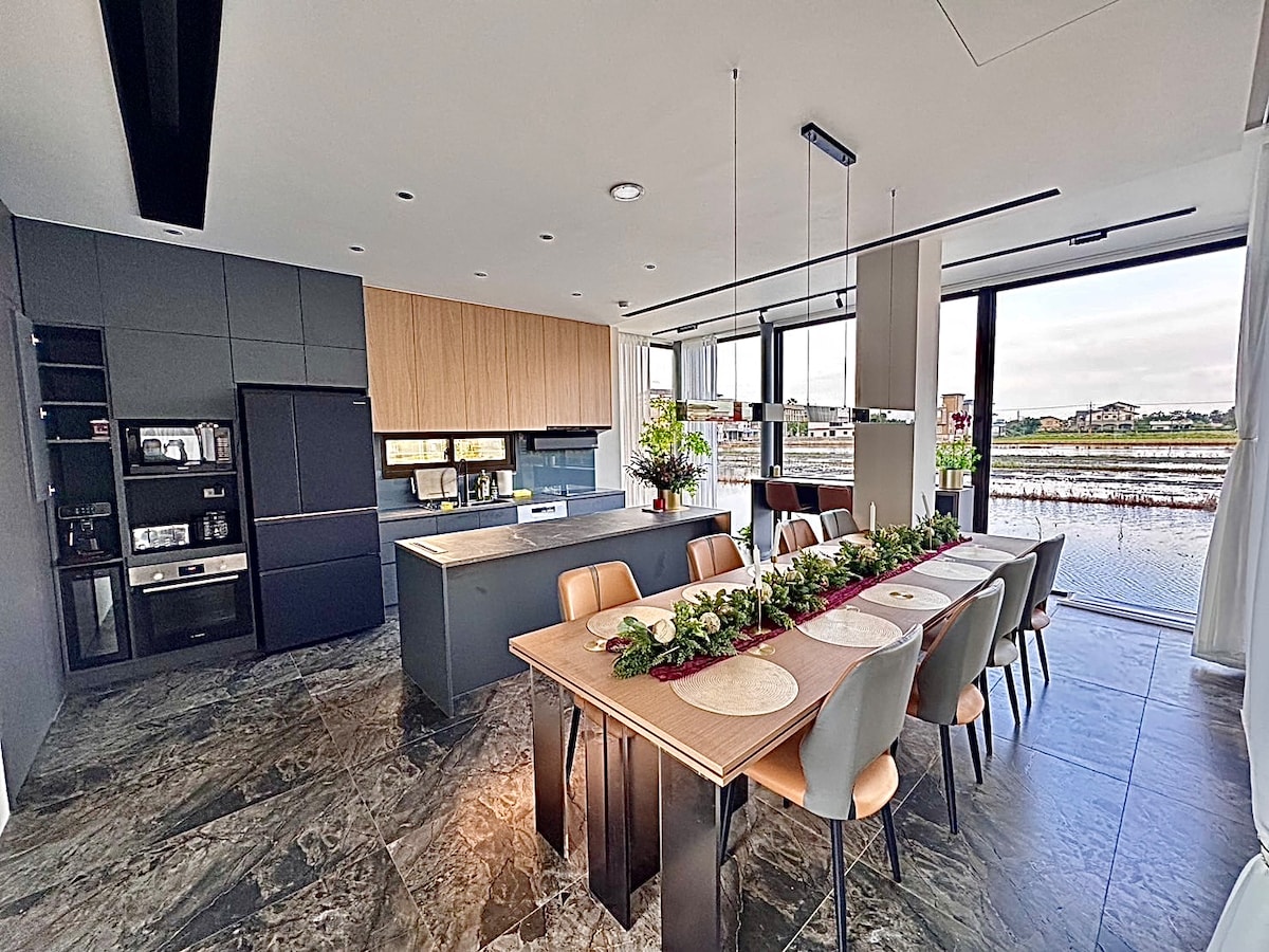 🌐 I et rolig hjørne av Yilan ligger et drømmeaktig tilfluktssted som føles som å gå inn i Middelhavet – Blue and White Villa 🌅 Vekket av morgenlyset, fordypet i tanker mellom blått og hvitt om ettermiddagen, og vugget i søvn av kveldsbrisen og latter – Hvert øyeblikk er ditt for ditt eget 🏖️ ferieritual. Blått og hvitt: mer enn bare farger Det er en måte å forvandle hverdagen til et vakkert syn på. Vi har fire️ rom + ett️ stjernekikkerrom i loftet (Passer for opptil 16 personer) Prisen er basert på seks personer. Mer enn én person belastes 800 yuan/person. Det er totalt tre bad (ett i hver etasje). ❤️ Ett dobbeltrom i første etasje, Du trenger ikke bekymre deg hvis du har bevegelsesproblemer eller hvis du er eldre. ❤️ 2️⃣ Firpersoners rom i andre etasje Det er en sklie og et barnetelt, egnet for barnefamilier 👫 ❤️ Tredje etasje er mesaninen. Nede er det 1️⃣ dobbeltrom + Stjernekikkerrom i loftet 🌃 Plass til opptil fire personer (Det er gardiner for privatliv, så vi kommer ikke til å se hverandre.) Stuen er utstyrt med et KTV🎤-karaokesystem (med spillelister som oppdateres ukentlig), et elektrisk mahjongbord, en SWITCH🎮-spillkonsoll, en UBOX📽️ og en dartmaskin🎯, slik at du kan nyte en fantastisk ferie⛱️ I tillegg har Yilan fylkeskommune også en forskrift som forbyr høye lyder etter kl. 22.00, så KTV og utendørsaktiviteter bør avsluttes før kl. 22.00. Vi tilbyr også et grillsett, utebord og stoler samt en regnskygge (et rengjøringsgebyr på NT$ 1 000 belastes separat). Avslutt grillingen før kl. 22.00 for å unngå å forstyrre andre beboere. Hvis du ikke ønsker å grille selv, er det en stek eller en privat kokk å velge mellom! Dersom du har spørsmål, er du velkommen til å spørre før du bestiller.