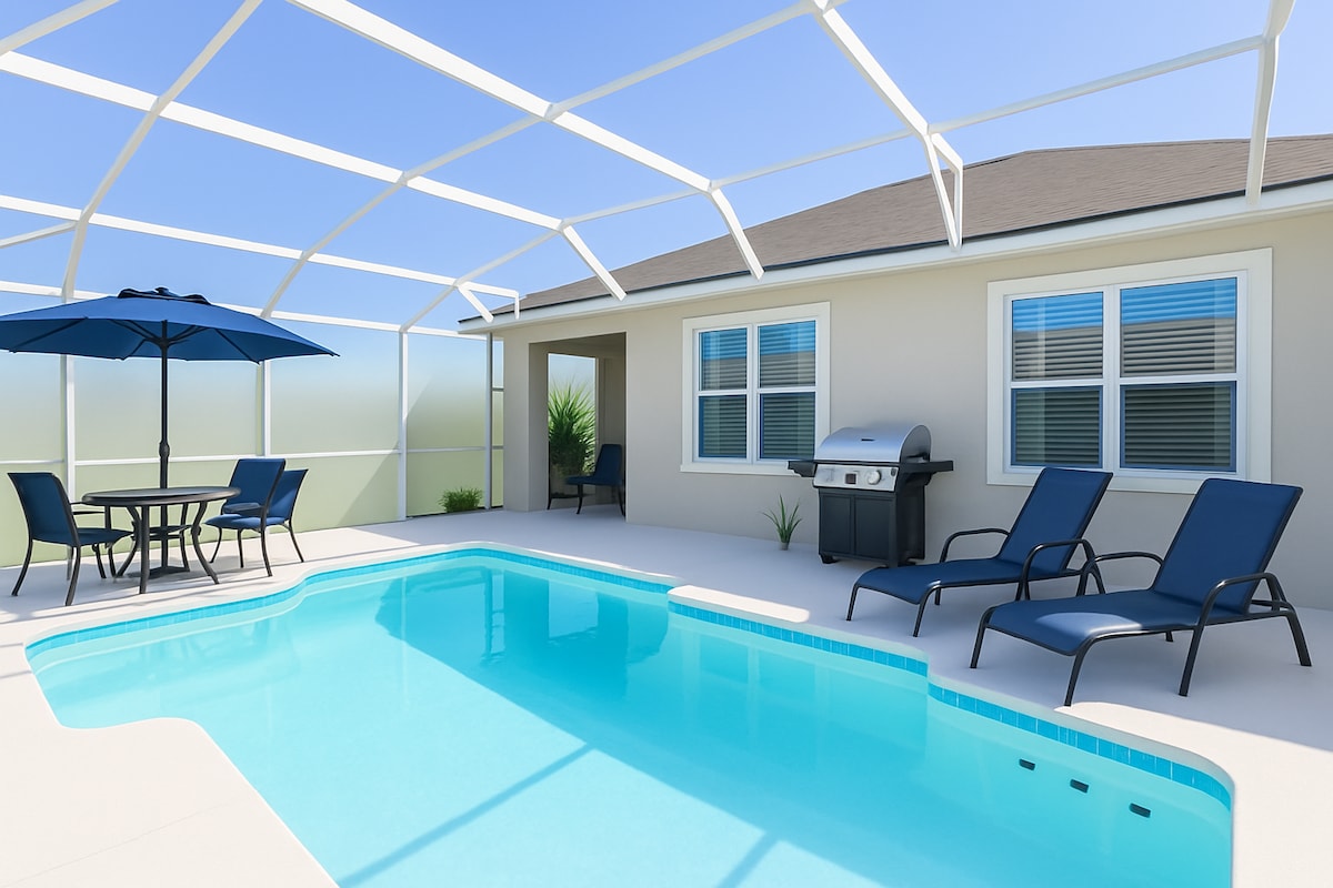 Sunset Villa er et enebolig med tre soverom og to bad, som har plass til syv personer (maks fem voksne, køyeseng og uttrekksseng har maks vektgrense på 125 lbs) og har et naturskjønt privat basseng. Den ligger praktisk til ca. 20 minutter til Disney World og 30 minutter til Universal Studios, Legoland og Peppa Pig Theme Park. Sunset Villa er innbydende med sin åpne planløsning, oppdatert gulv, maling og innredning. Det avskjermede bassenget tilbyr privatliv og komfort med varme (gebyrer påløper) og den perfekte utsikten til utendørs-TV-en.