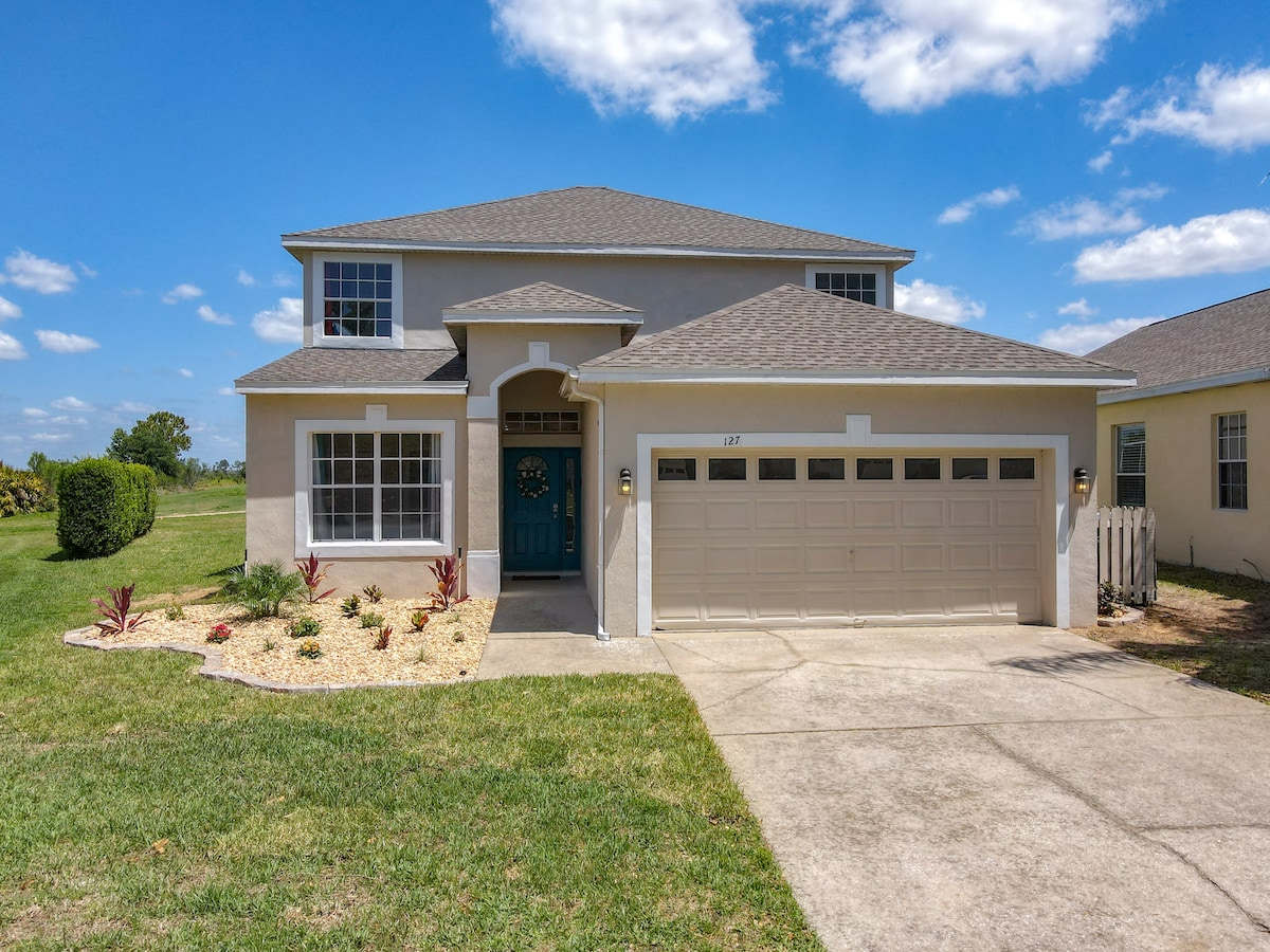 Ligger i det fredelige 4 Corners-samfunnet i nærheten av Disney og topprangerte attraksjoner, Target, Publix og restauranter. Nyoppdatert, innbydende og moderne 2 nivåer, 5 soverom/3,5 bad med komfortable luksuriøse senger! Utstyrt med et privat basseng (varme mot et ekstra gebyr), spillrom, grill og gratis Nespresso. På baksiden er det en minigolfbane, corn hole og bålplass som familien kan samles rundt under den varme stemningen fra lyslenker. Et sted for familien å trekke seg tilbake, slappe av, nullstille og ha det gøy!
