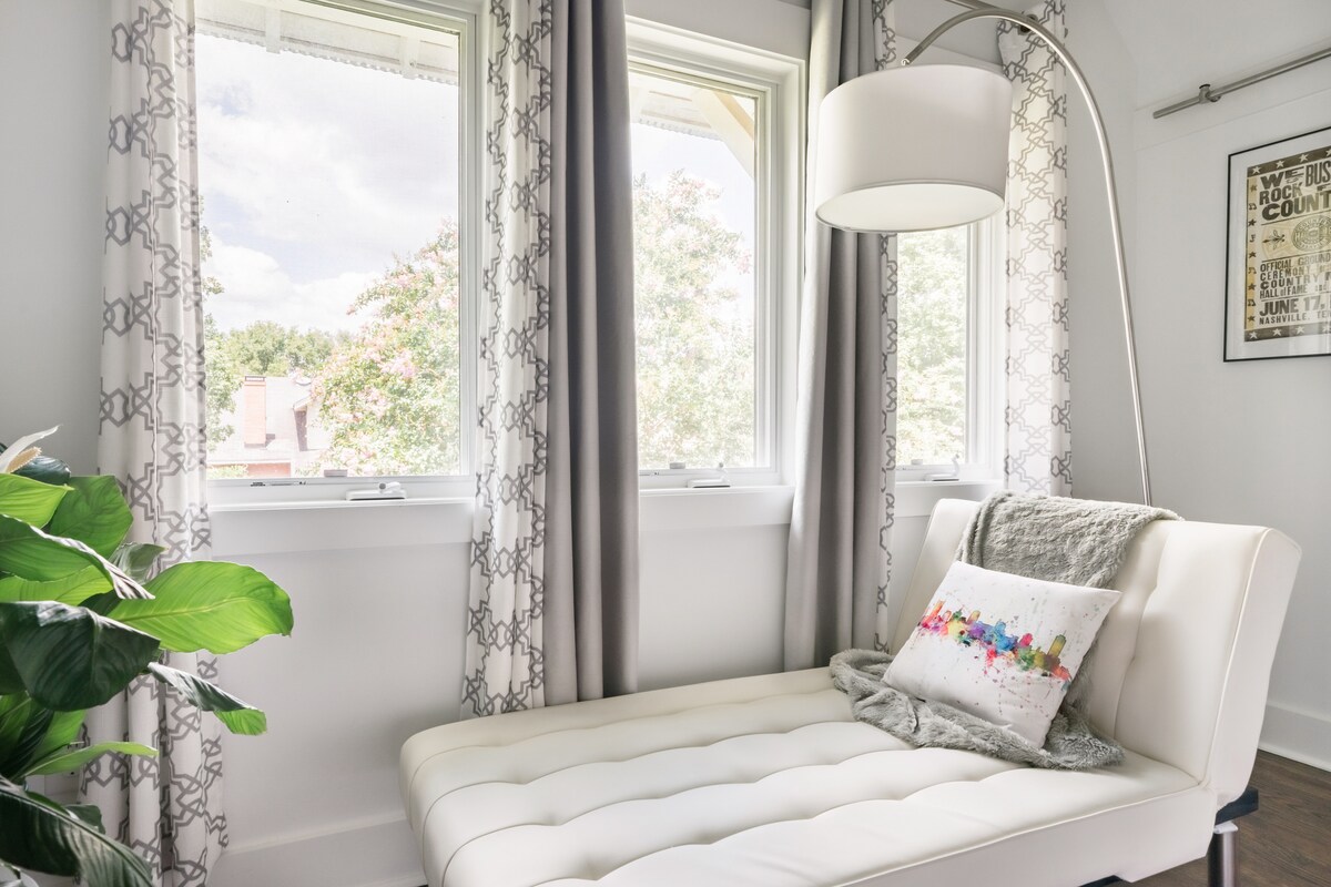 Utforsk loftsferien vår i East Nashville, i nærheten av Five Points. Et koselig soverom noen skritt unna butikker, kaféer, restauranter og Shelby Park. Den fremre steinplattingen og den private parkeringen forbedrer oppholdet ditt. I nærheten av handlingen, men fredelig, er det en ideell Nashville-base. Nyt kvalitetssengetøy på en Tempur-Pedic queen-madrass. Les en bok eller se en film fra den komfortable skinnsofaen. Det komplette kjøkkenet og vaskemaskinen/tørketrommelen gjør det praktisk.