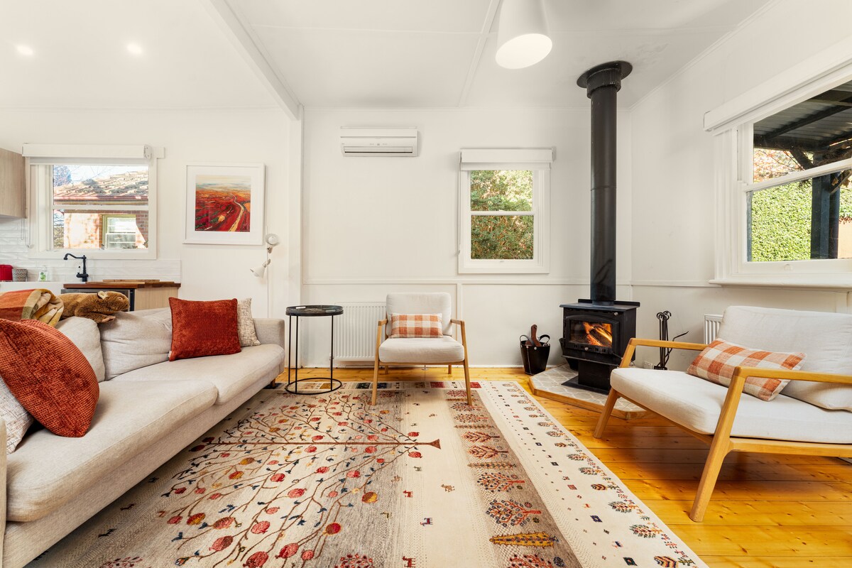 Ser du etter et sted med god gammeldags gjestfrihet, en komfortabel seng med kvalitetssengetøy, en varm dusj og et skinnende rent sted hvor du kan slappe av blant trær og natur mens du besøker Daylesford? Vår koselige, eklektiske, hjemmekoselige bungalow ligger på toppen av et stort treverk på baksiden av hjemmet vårt, som ligger blant eukalyptustrær og skog med utsikt fra hvert vindu. Vi tilbyr ferske frittgående egg, lokal honning, kaffe, te, melk og noen ekstra basisvarer!