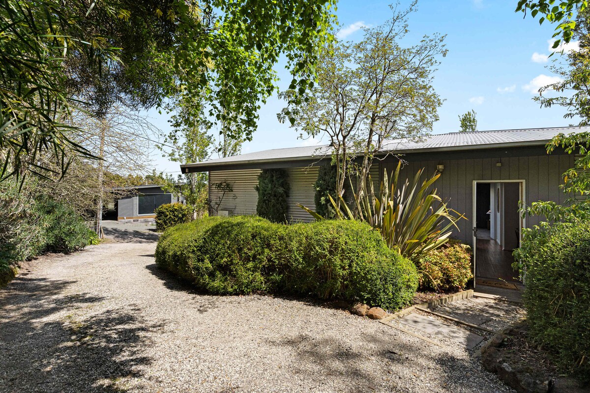 Ser du etter et sted med god gammeldags gjestfrihet, en komfortabel seng med kvalitetssengetøy, en varm dusj og et skinnende rent sted hvor du kan slappe av blant trær og natur mens du besøker Daylesford? Vår koselige, eklektiske, hjemmekoselige bungalow ligger på toppen av et stort treverk på baksiden av hjemmet vårt, som ligger blant eukalyptustrær og skog med utsikt fra hvert vindu. Vi tilbyr ferske frittgående egg, lokal honning, kaffe, te, melk og noen ekstra basisvarer!