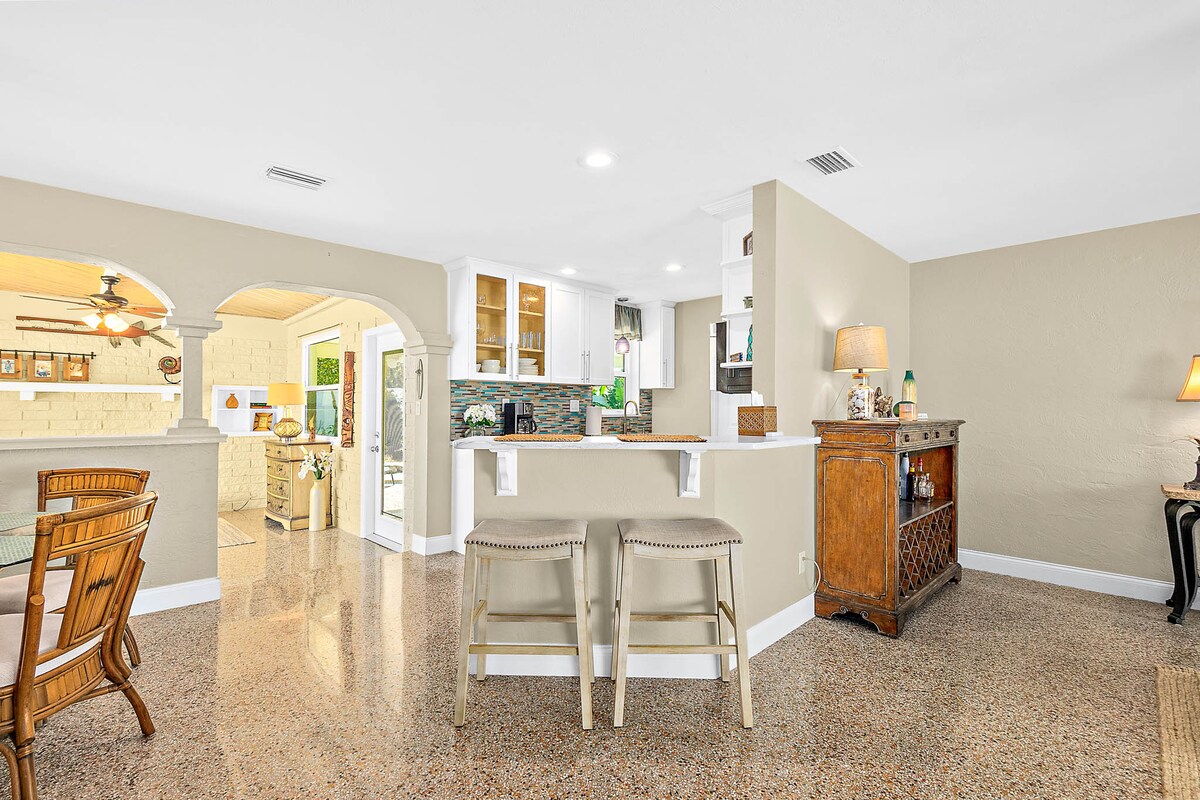Tre minutters spasertur til stranden! Casa Playa er et nyoppusset kysthus innenfor noen skritt fra stranden. Dette hjemmet med tre soverom ligger i en rolig gate og er det perfekte stedet for å slappe av og leve som en lokalkjent. Dette stedet er perfekt for familier og venner, og det er fullt utstyrt og klart for ankomsten din ankomst. Bare ta med badedrakt, flopper og solbriller! Nyt de vakre soloppgangene på stranden, eller gå ned til bryggen vår og se solen gå ned ved elven.