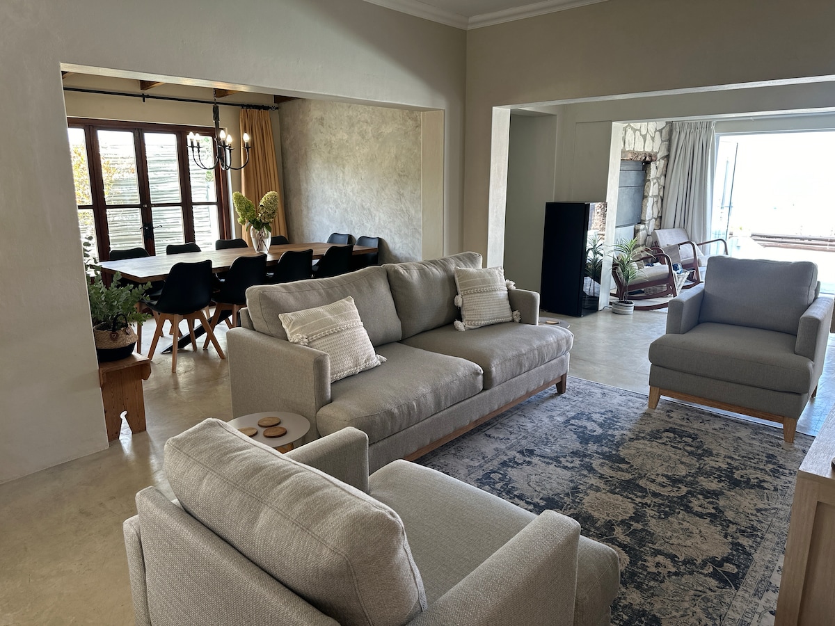 Reis til villaen vår ved havet, et luksuriøst tilfluktssted i De Kelders, høyt over de dramatiske klippene i naturreservatet Walker Bay. Fordyp deg i et eksklusivt tilfluktssted hvor havet møter himmelen. Opplev noen av verdens mest spektakulære hvalsafari rett fra din store terrasse eller gjennom panoramavinduene i den stilige stuen din. Nyt kveldene under stjernene i vår private boma, perfekt for minneverdige grilling og sammenkomster ved havet.
