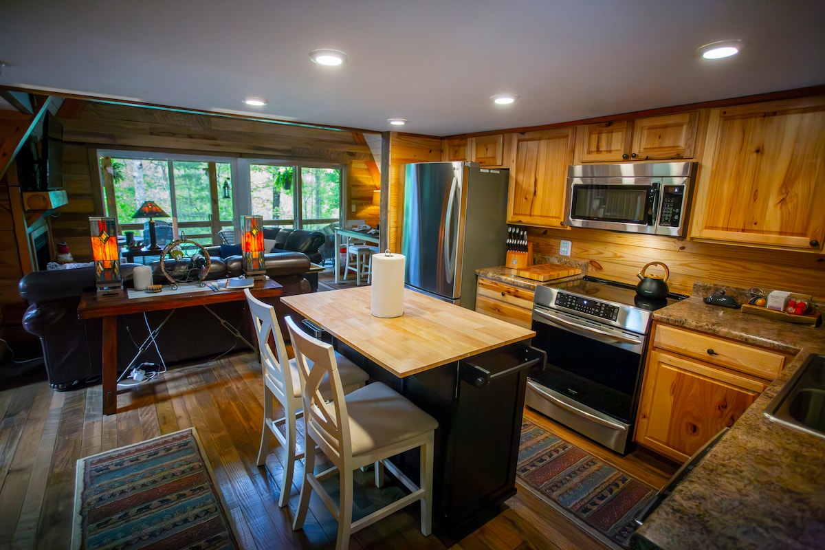 Dette stedet er alt annet enn ordinært. Smoky Mountain Treehouse er den eneste av sitt slag i området – en luksuriøs, spesialbygd tretoppopplevelse med en spektakulær utsikt og hjemmets bekvemmeligheter, og mer til. Kryss den 40' svingbroen og gå inn i den store buede døren hvor du blir transportert til et sted hvor nostalgi for et tretopphus kombineres med luksusen i moderne tid. Denne unike eiendommen har alt du trenger for en romantisk eller eventyrfylt ferie!