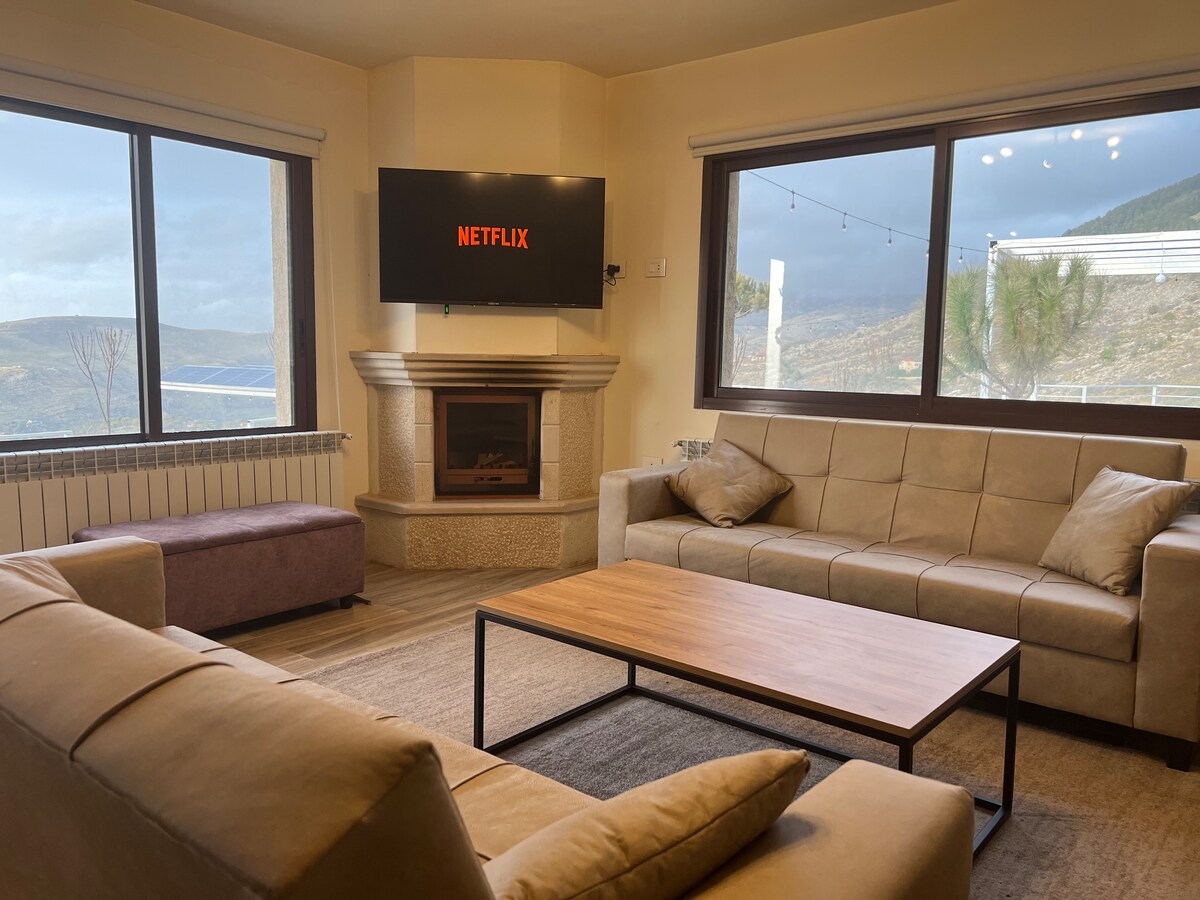 Flykt til naturen med stil Velkommen til ditt private feriested i hjertet av Barouk Cedars. Ideelt for par eller familier, og tilbyr den perfekte blandingen av natur, komfort og luksus. - 1 soverom - innendørs jacuzzi - svømmebasseng - utsikt mot solnedgangen. - kjøkkenkrok - AC – 24/24 elektrisitet – utendørs grill og hage – musikk tillatt – bål (ekstra kostnader involvert) Gå inn i et koselig oppholdsrom, slapp av under stjernene i jacuzzien, eller fyr opp grillen mens du nyter fantastisk utsikt over fjellene.
