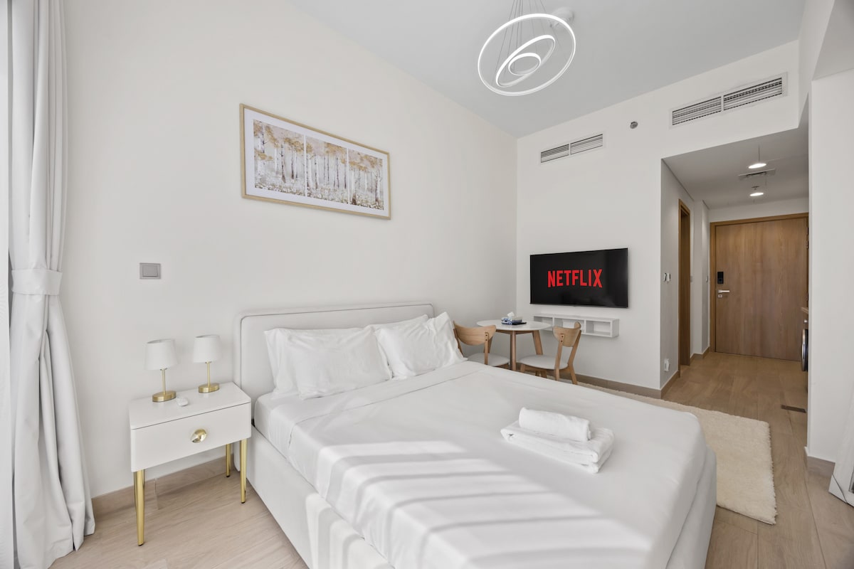 Et sjeldent studio i Business Bay med privat jacuzzi-balkong, mørkt moderne interiør og en stemning laget for komfort og ro. Ligger i et helt nytt tårn med et basseng i feriestedstil, treningsrom med Technogym-utstyr, kaldt basseng og badstue. Smart inngang, ultrarask trådløst nettverk og alt du trenger for å slappe av eller jobbe med stil. Enten du er i Dubai for å utforske eller slappe av, ble dette stedet bygget for å gi deg et opphold på et høyere nivå.