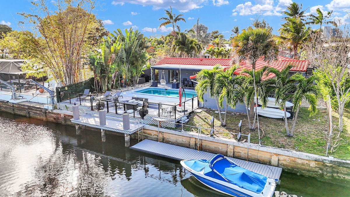 🌴Welcome to your canal-front retreat! Have some fun in the pool with the family, or enjoy some drinks in the hot tub and built in new wet bar. 🍹Our outdoor seating area has a TV 📺—perfect to watch your favorite Team play or for family movie night. 🍔🔥Relax under the gazebo with BBQ area, 💪🏋️♀️or work out in the outdoor gym. 🛌Comfortable bedrooms and two renovated bathrooms ensure a great stay. Just minutes from Pompano Beach’s beautiful shores and dining! 🏖️