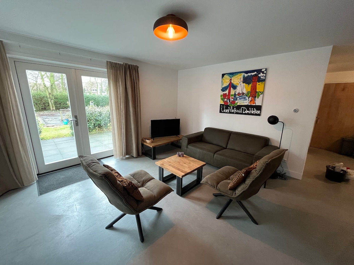 Hyggelig, romslig (70 m2) leilighet i hele første etasje i huset mitt med privat, beskjedent kjøkken og privat bad og tilgang til en stor hage (150 kvm) i sentrum av Den Helder. Gangavstand til havet, togstasjonen (75 minutter til Amsterdam) og fergen til Texel. Parkering er gratis i en avstand på 300 meter, og rundt huset er det en blå parkeringssone her kan du stå i tre timer. Garasje tilgjengelig for å parkere syklene dine inne. Supermarked ett minutts gange.