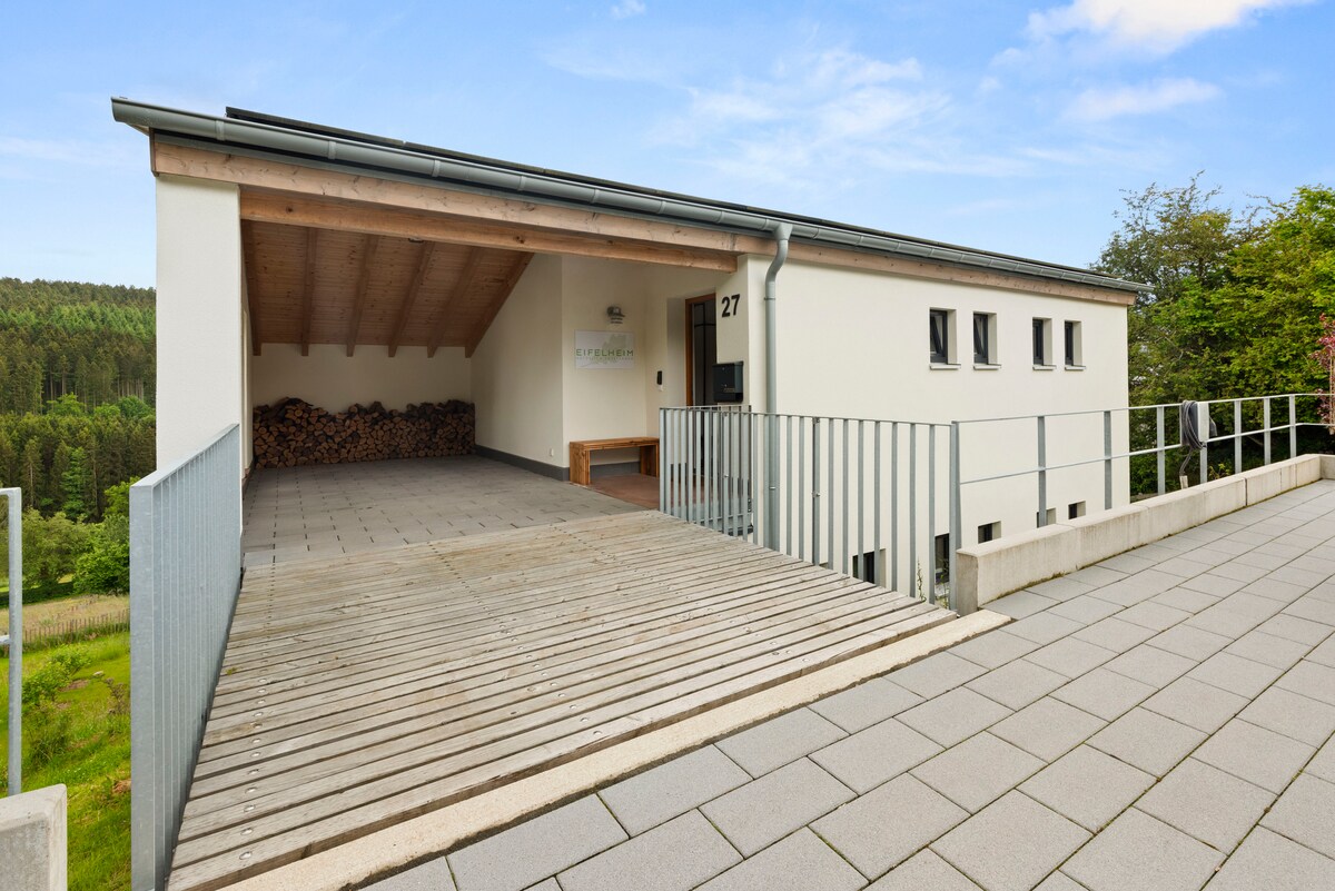 Ferieleiligheten ligger i Daun, OT Pützborn, i en rolig beliggenhet. Gangveien til Daun går oppover. I byen ligger Wild-u. Opplevelsespark og REWE (åpent til 22.00). Vulkaneifel, kjent for sine maare, har mange vakre tur- og sykkelstier. Eifelsteig er i nærheten. Via Kosmosradweg kan du enkelt nå Maare-Mosel-sykkelveien. Nürburgring og alle severdigheter kan nås med bil. Flyplassen Daun-Senheld tilbyr rundflyginger over Maare, Mosel eller Nürburgring.
