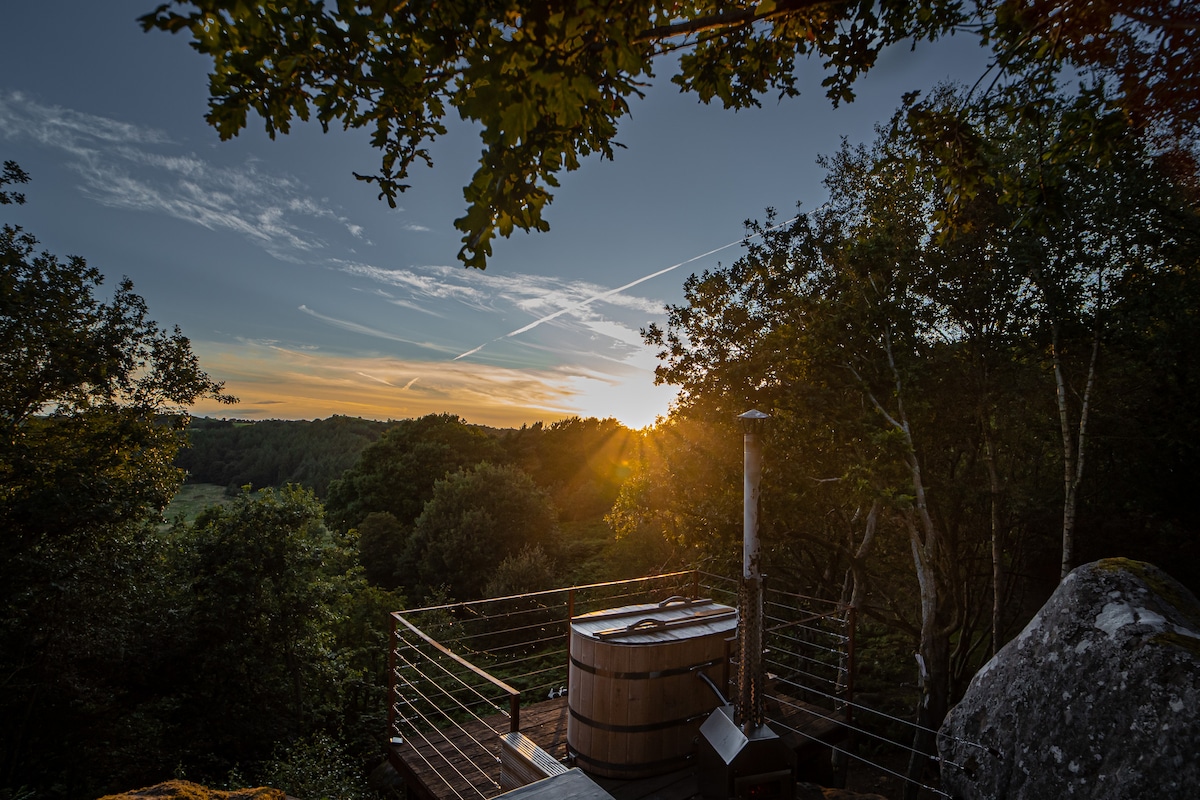 Denne vakkert håndlagde hytta ligger blant steinblokkene på 5 hektar på toppen av Eagle Tor, og er den ultimate romantiske ferien. Slapp av og kom deg tilbake til naturen i den nydelige vedfyrte boblebadet som ligger på en steinblokk med utsikt over dalen, etterfulgt av en utendørs dusj som ligger blant steinene. På hytta kan du nyte den nydelige 180 graders utsikten fra den koselige sengen din, for ikke å nevne glasstaket for stjernekikking! Et tildekket utekjøkken/spiseområde og en bålplass for å riste marshmallows.