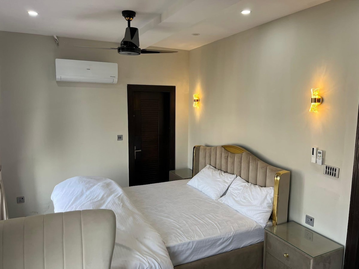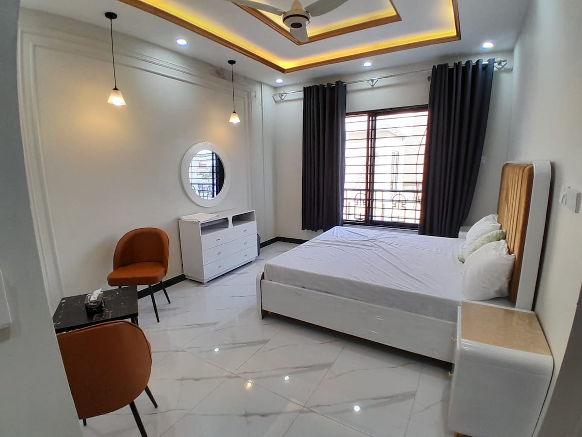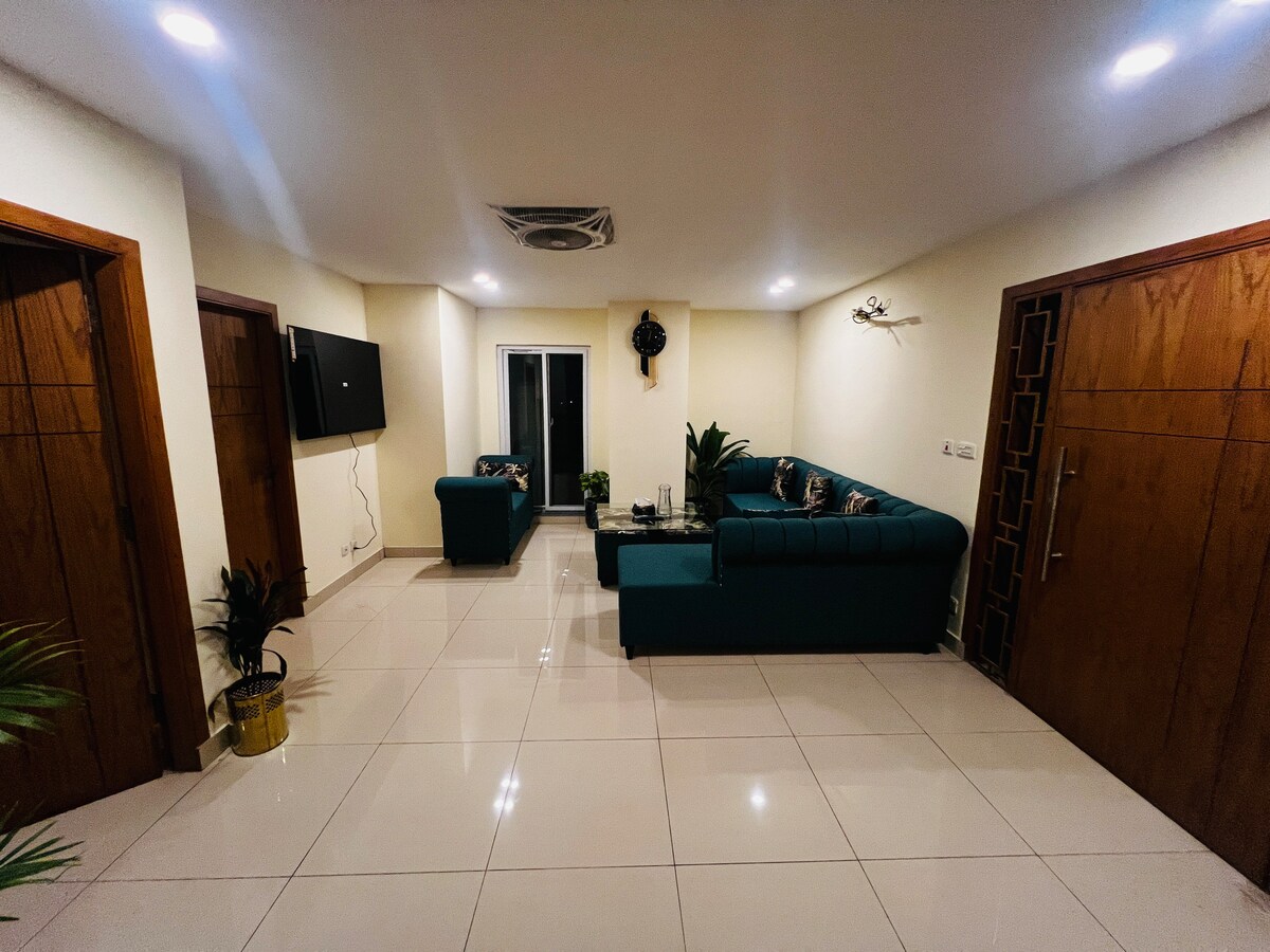✔ Beliggende i sentrum av Islamabad, i den nyeste og jordskjelvsikre boligbygningen i F11 - 18 West Residencia Apartments ✔ En vakker, privat og frodig grønn uteplass med bålplass, perfekt for grillkvelder. Leiligheten ✔ vår ligger ti skritt unna det kostnadsfrie treningsstudioet i bygningen. ✔ Dra nytte av gratis, sikker og nøkkelfri innendørs parkering i bygningen, tilgjengelig med bygningskortet. ✔ Døgnåpen resepsjonist Sikkerhet ✔ døgnet rundt. ✔ Utvendige overvåkningskameraer er installert